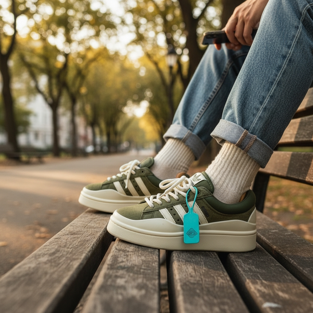 La rencontre entre le design iconique d’Adidas et l’univers créatif de Bad Bunny. Ce modèle Campus « Olive » propose une esthétique terreuse avec son daim vert de haute qualité et sa silhouette volumineuse caractéristique. Un mélange parfait de luxe et de culture urbaine.