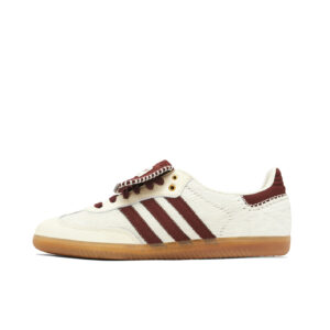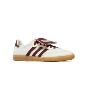 L’Adidas Samba, véritable icône du streetwear, revient dans une version audacieuse. Sa tige en cuir blanc texturé est contrastée par les trois bandes bordeaux et un talon assorti, créant un style rétro unique. La languette oversize et la finition couture donnent une touche artisanale originale. Montée sur une semelle en gomme, cette paire assure confort et adhérence, idéale pour un look casual authentique au quotidien.