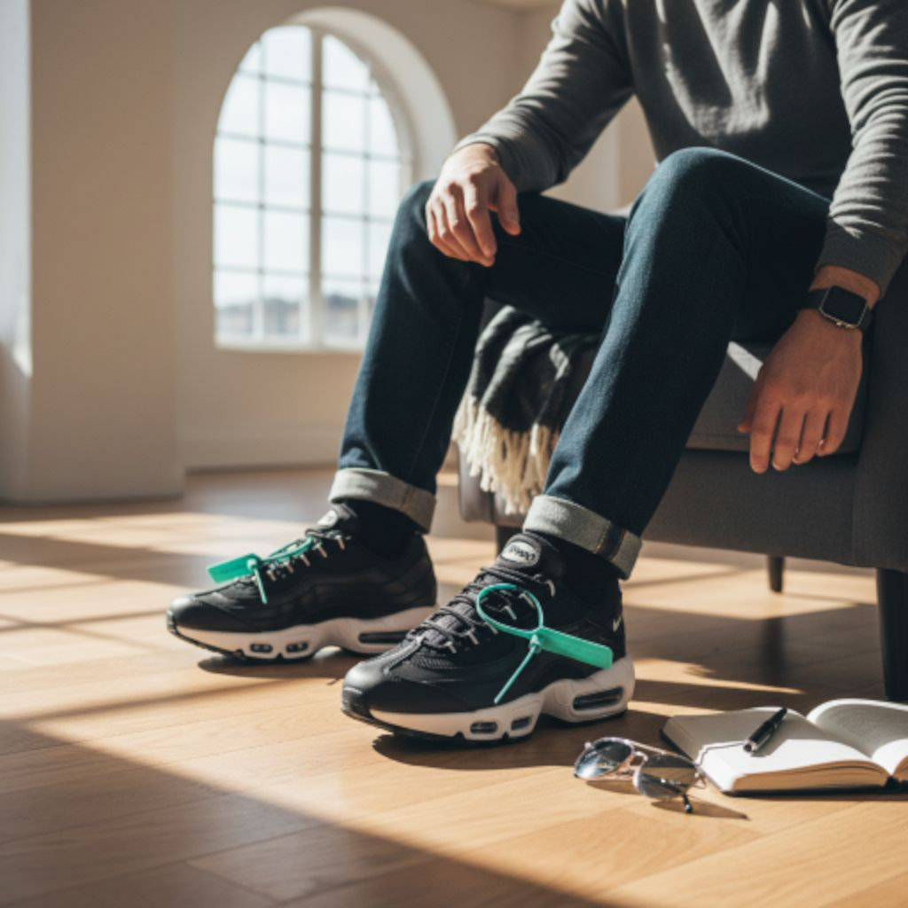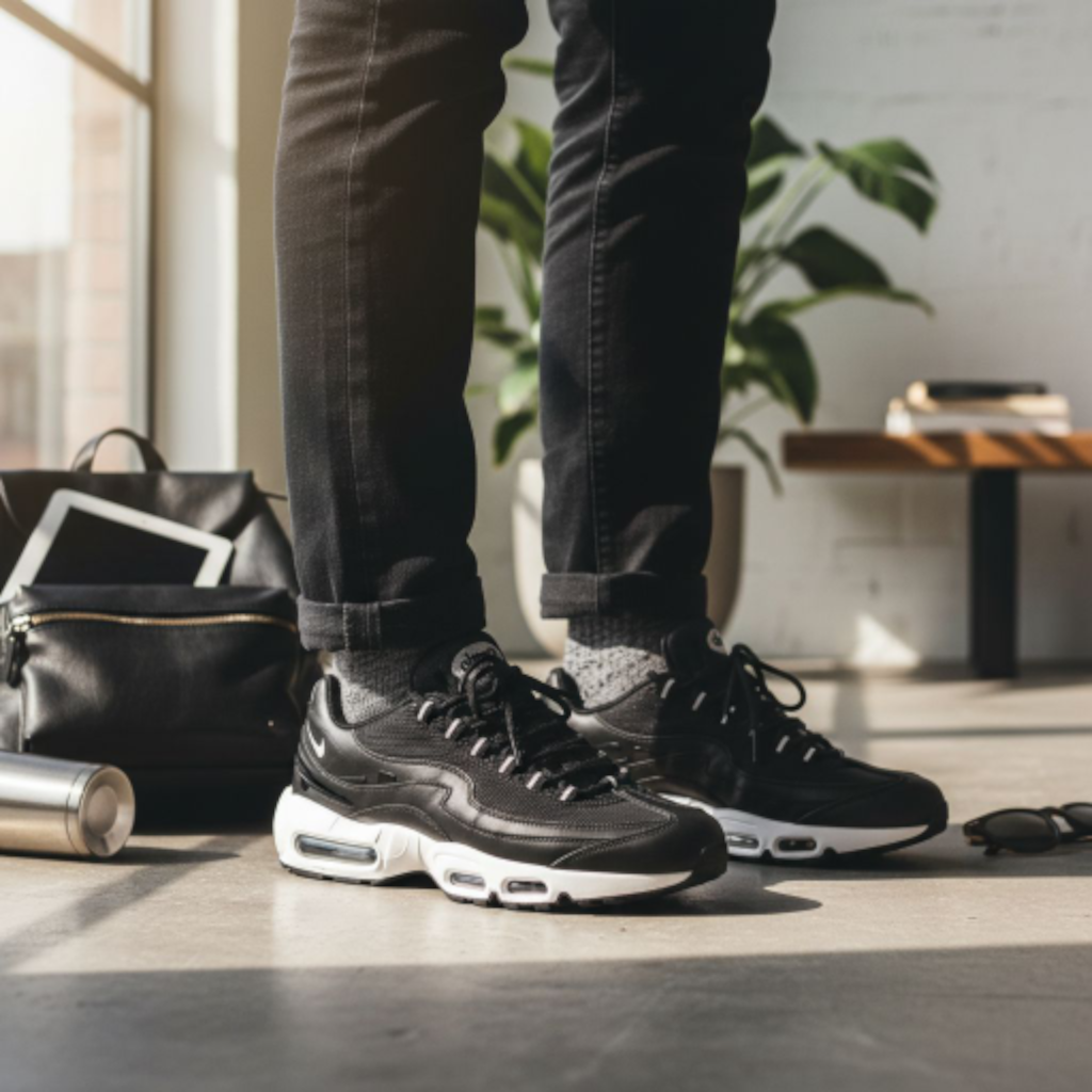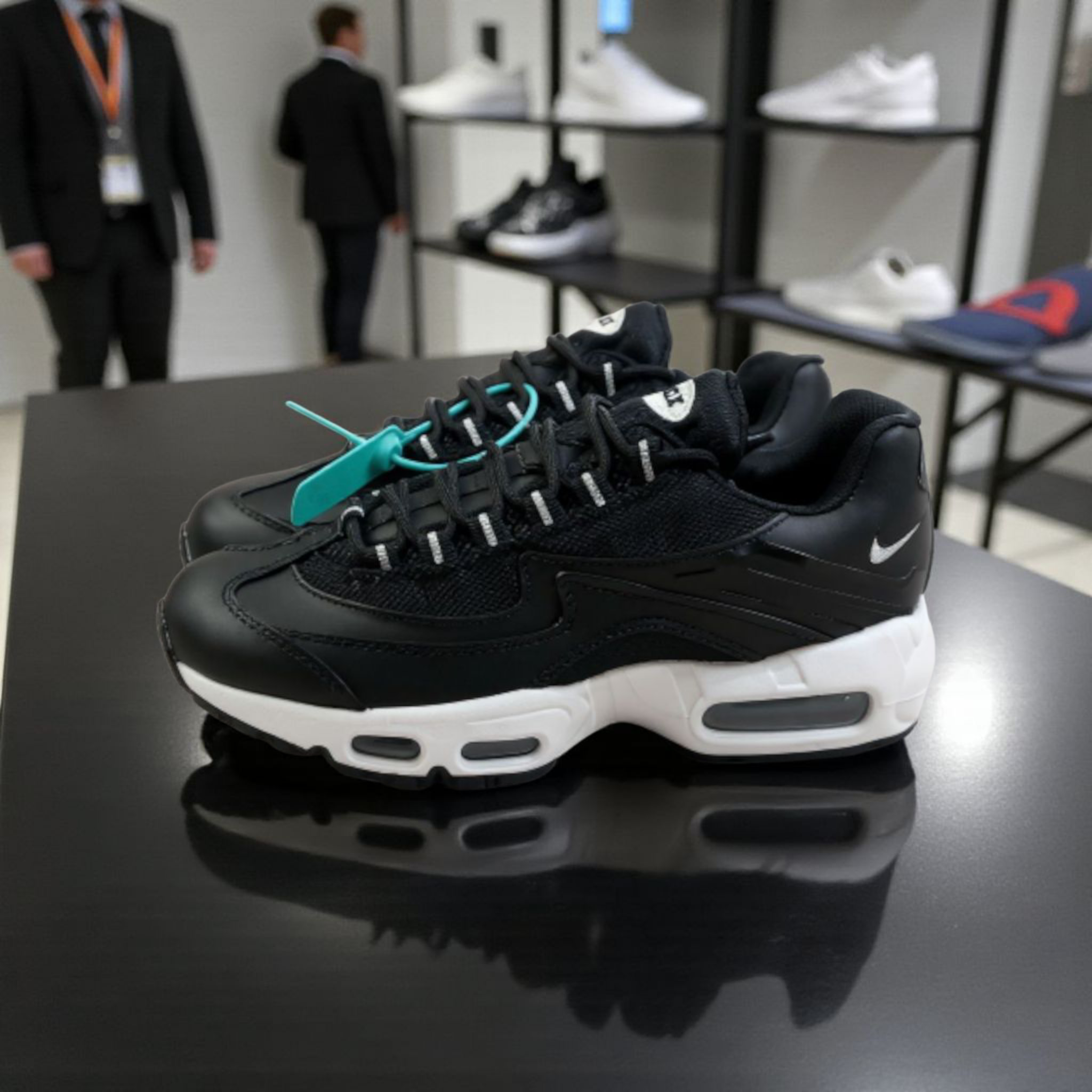 D’après les images, vous avez des baskets de style Air Max 95 (un modèle classique de Nike), mais le logo sur la languette indique « aimax » au lieu de « Air Max ». Ces chaussures sont d’un modèle inspiré de la célèbre chaussure de course des années 90, reconnaissable à ses lignes ondulées et son amorti visible.