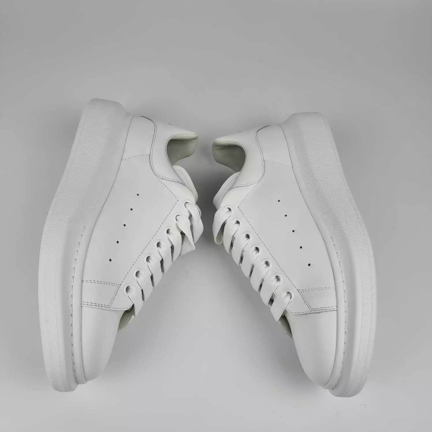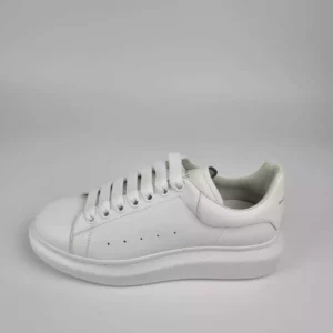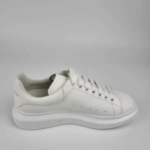 ¯Les Alexander McQueen Oversized incarnent l’élégance intemporelle. Confectionnées en cuir blanc de haute qualité, elles se distinguent par un logo doré raffiné apposé sur le talon, ajoutant une note luxueuse à leur design minimaliste. Leur semelle épaisse signature assure un confort exceptionnel et un style affirmé, idéal pour rehausser vos tenues quotidiennes ou vos looks plus habillés.