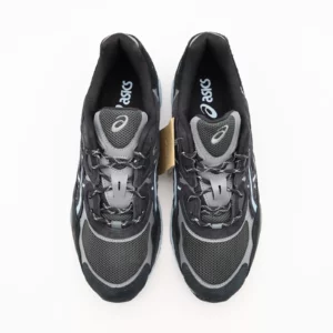 « Asics Gel – Sneakers confortables et stylées, conçues pour un usage quotidien et sportif. Dotées d’une semelle amortissante Gel pour un confort optimal, d’un mesh respirant et de finitions noires et grises avec détails bleu clair pour un look moderne et polyvalent. »