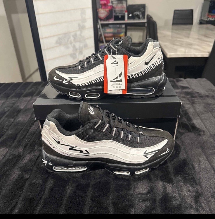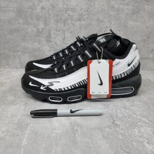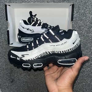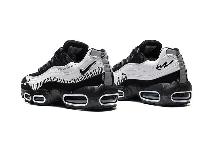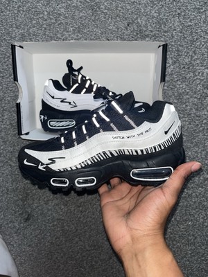 Baskets style Air Max 95 « Sketch With The Past » – Design artistique noir et blanc, look unique, bulles d’air stylisées et détails graphiques dessinés à la main.