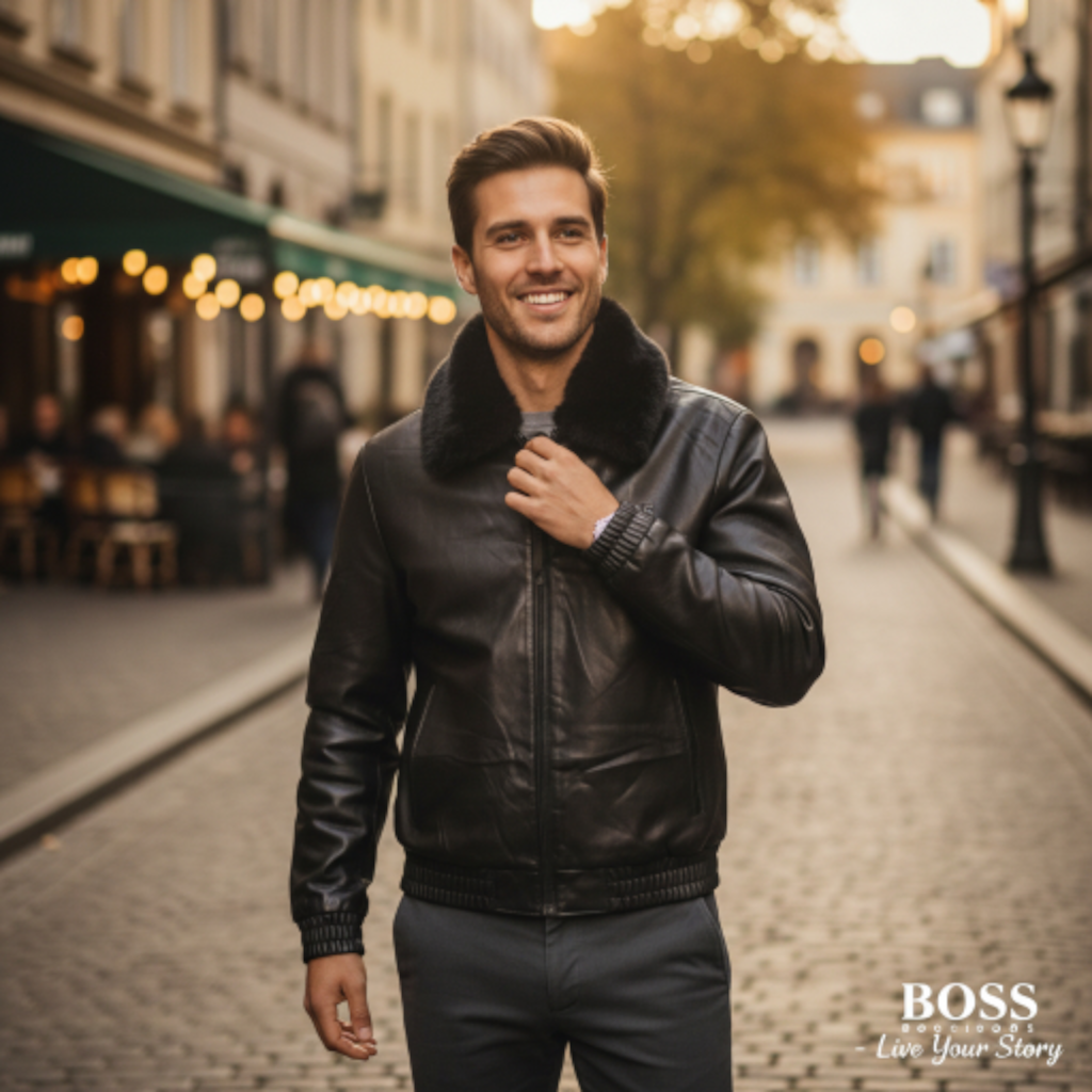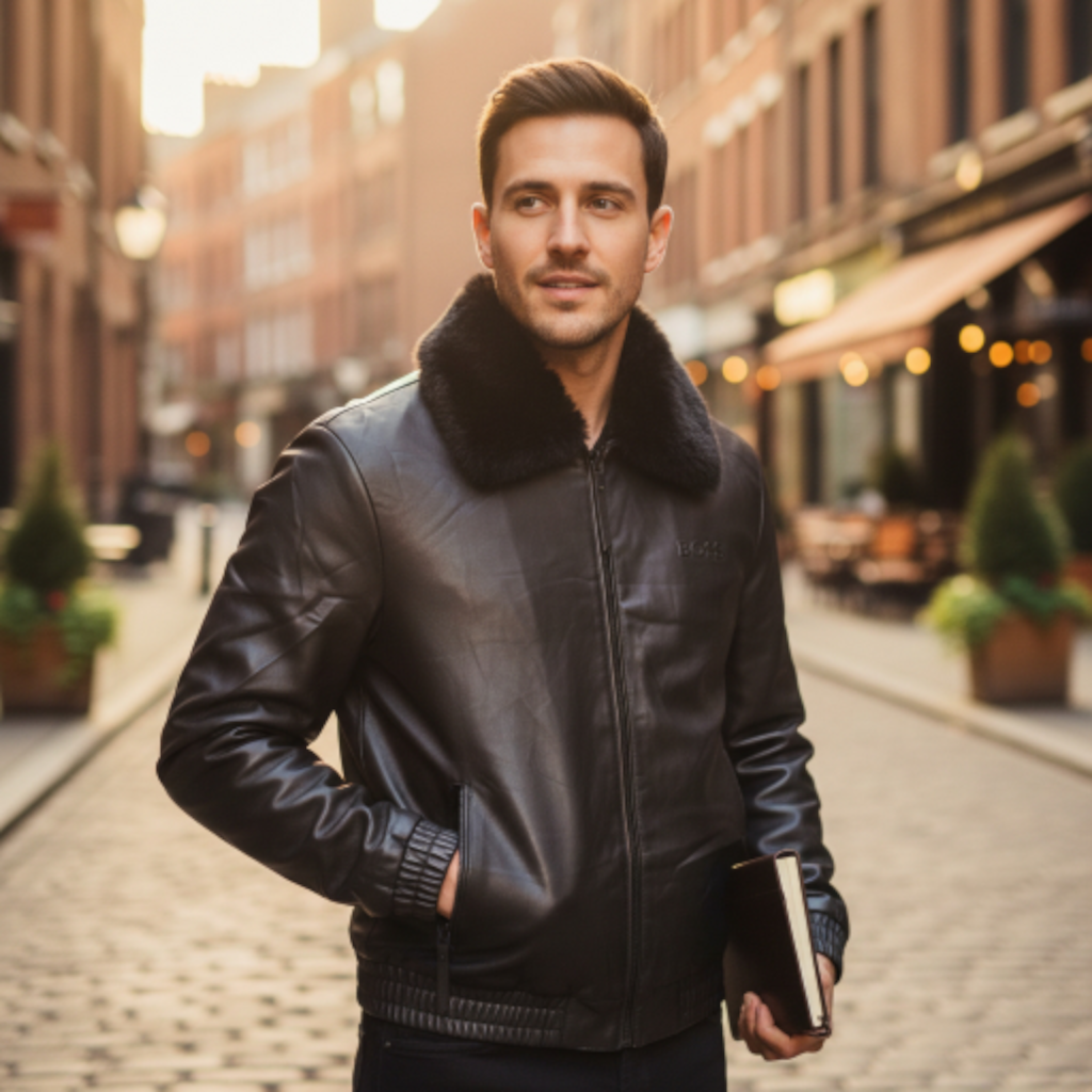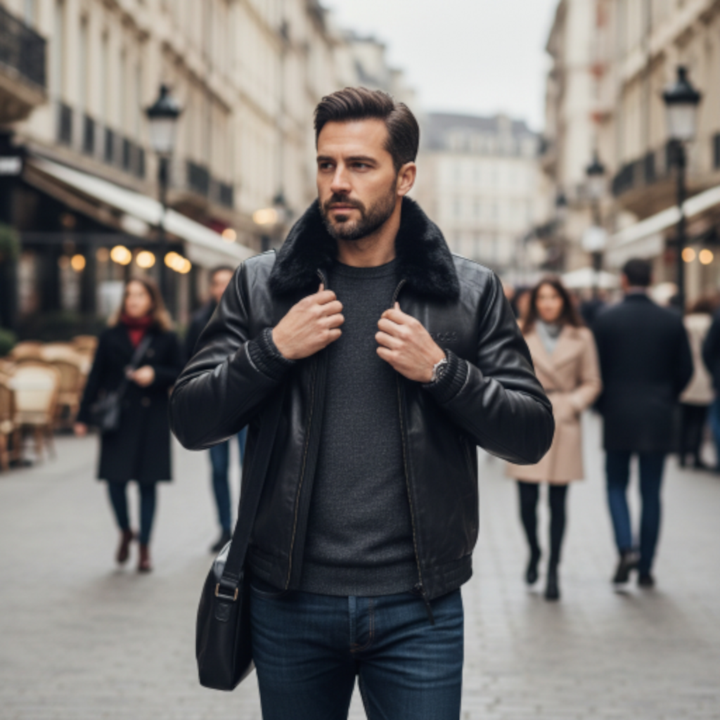 Col : Il est équipé d’un col amovible en fausse fourrure noire épaisse et douce. Le col peut être retiré pour un look plus épuré de type bomber classique, ou conservé pour une touche de luxe et de chaleur supplémentaire.