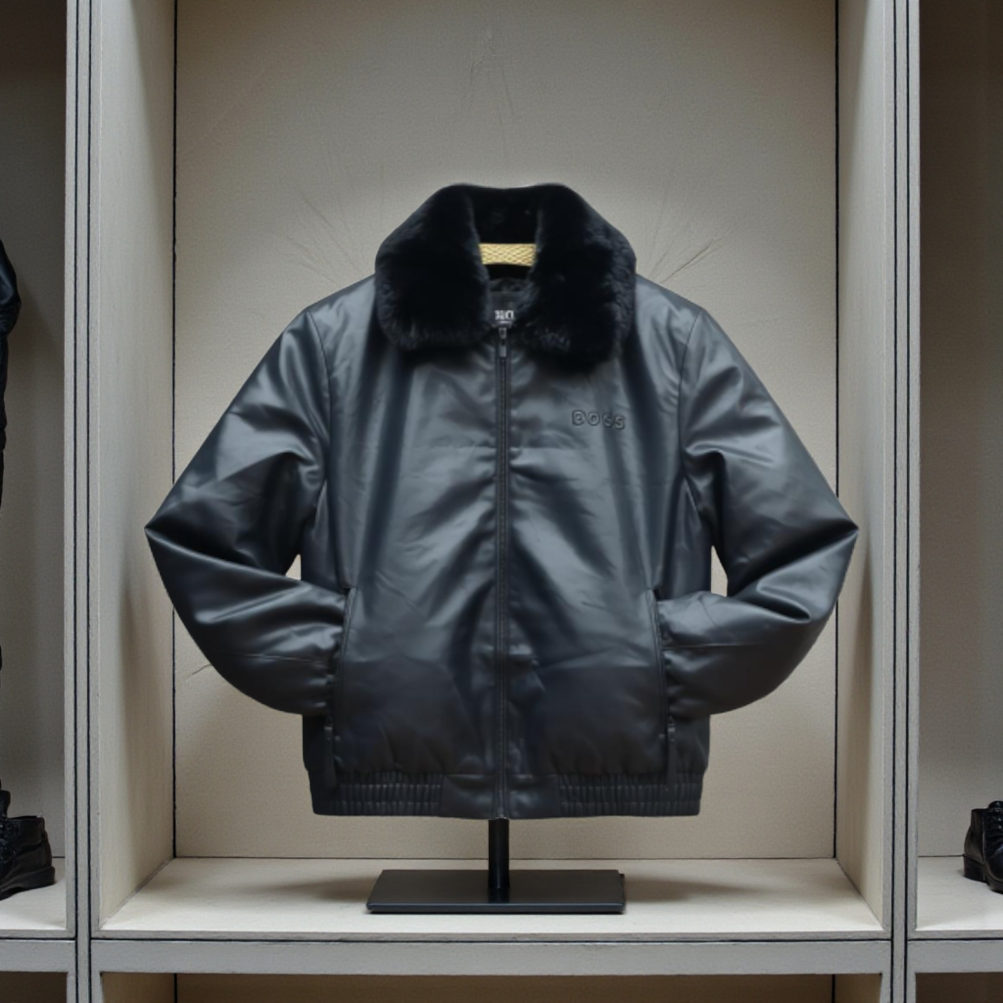 /    /  vêtements  /  Blouson Aviateur BOSS en Simili-Cuir avec Col Amovible en Fausse Fourrure
