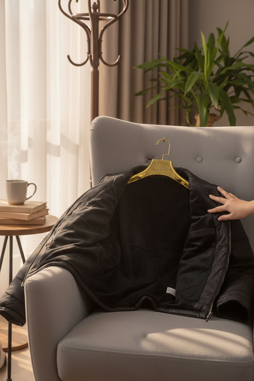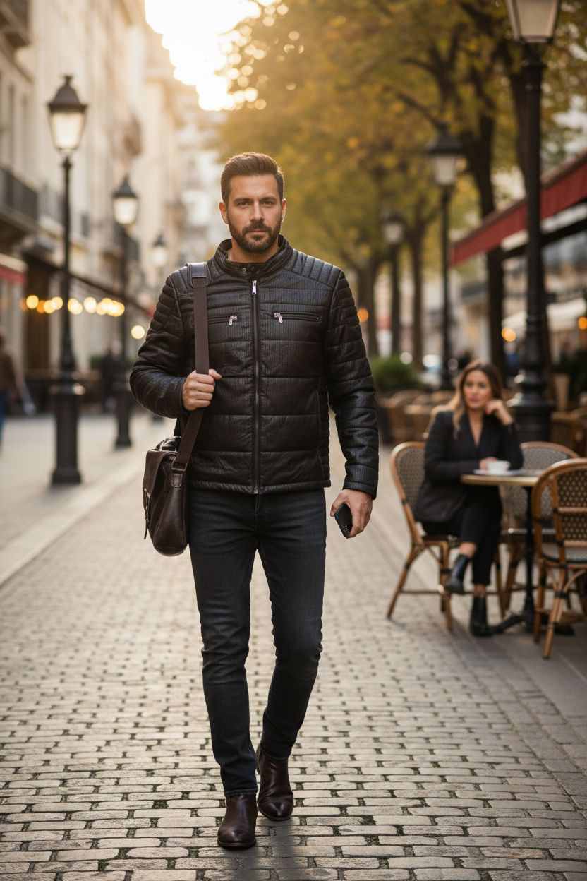 Un incontournable de la garde-robe moderne, ce blouson noir matelassé allie style sophistiqué et confort optimal.