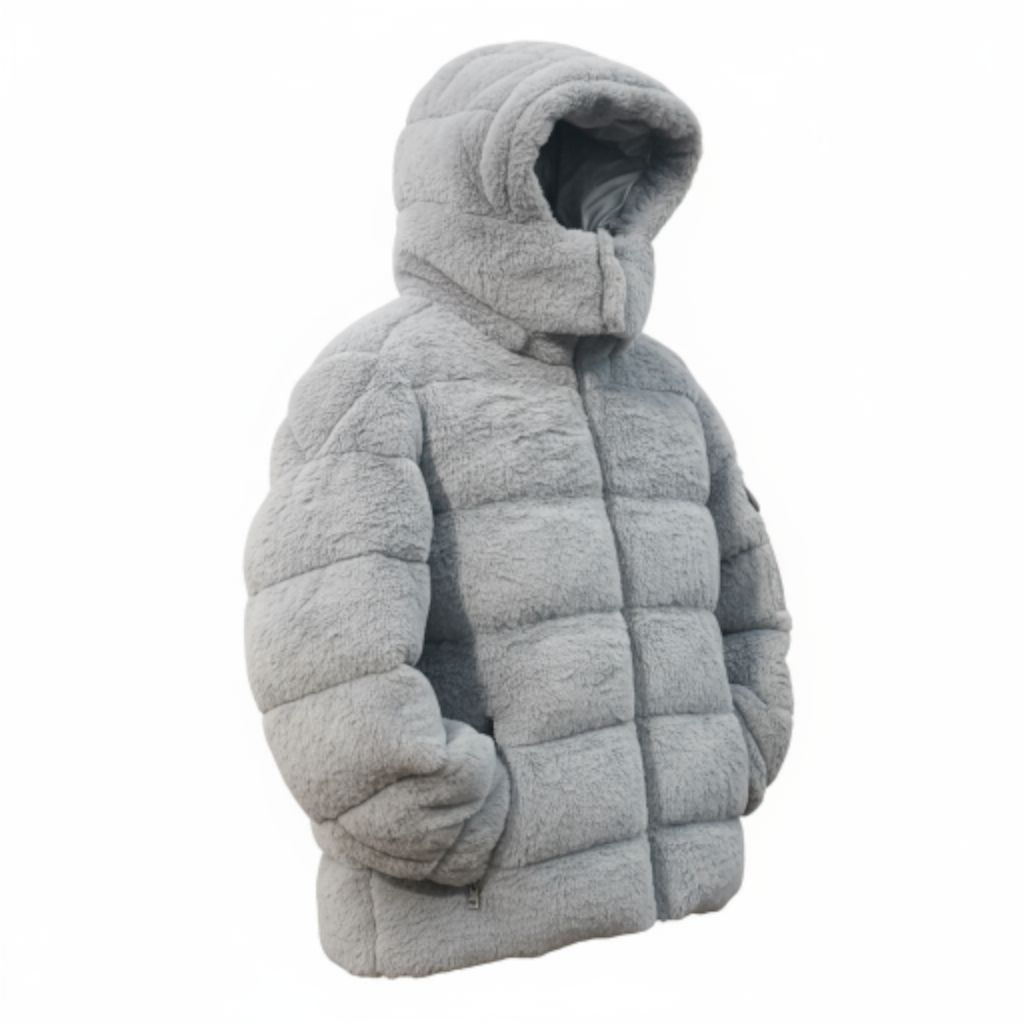 Couleur et Matière : Fausse fourrure somptueuse de couleur gris clair, offrant une texture riche et un aspect élégant.