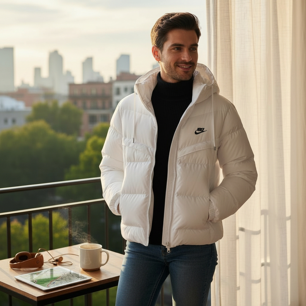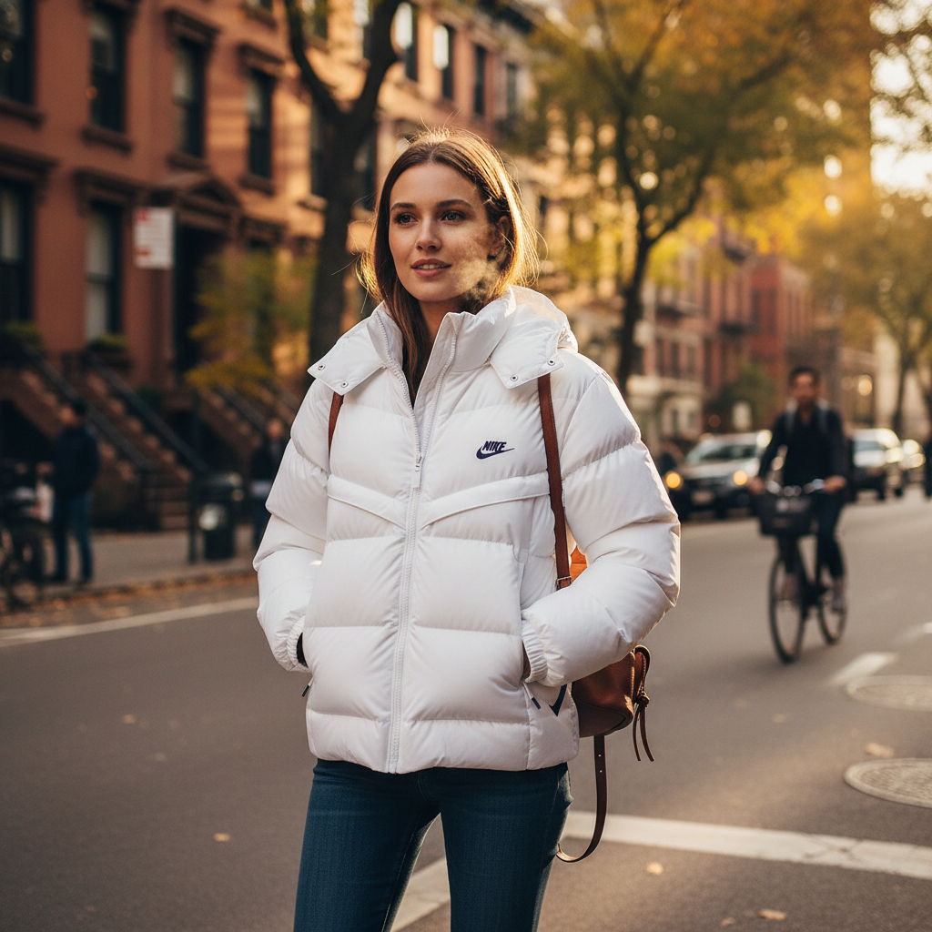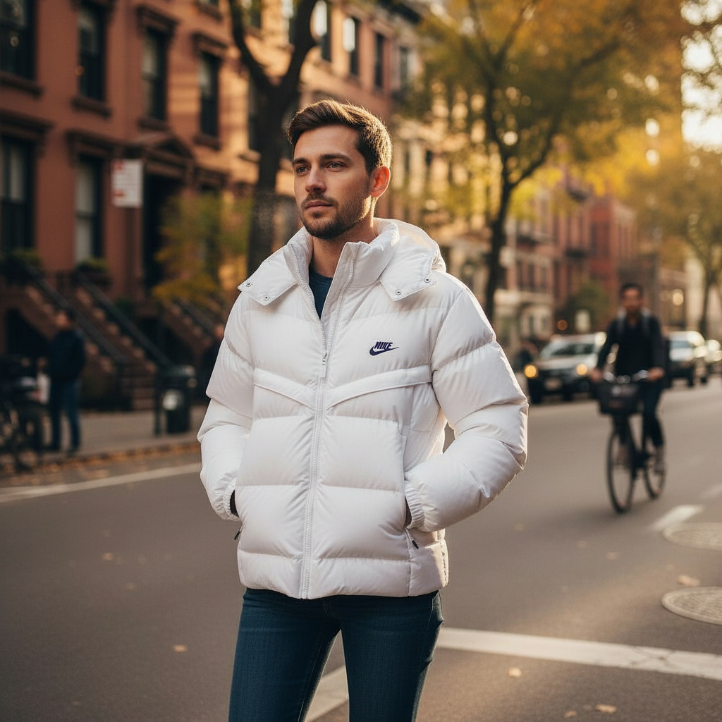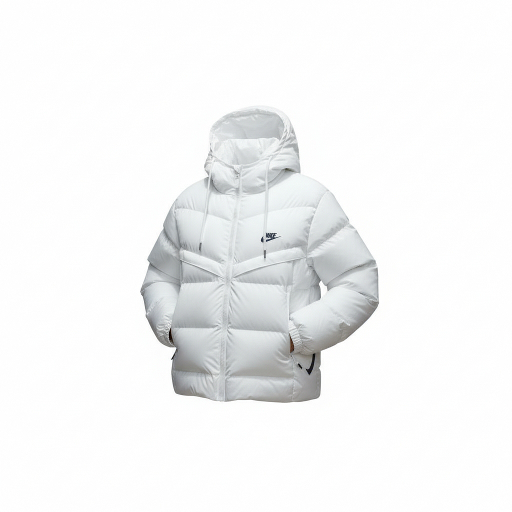 Affrontez le froid avec style grâce à cette doudoune Nike haut de gamme, conçue pour allier isolation thermique et esthétique urbaine. Arborant un coloris blanc immaculé, elle reprend les lignes iconiques du design Windrunner avec son empiècement en chevron sur la poitrine.