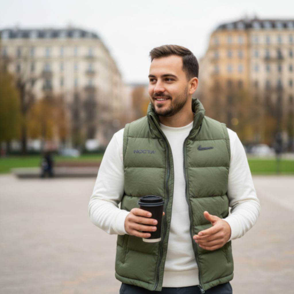 Affirme ton style avec cette doudoune sans manches Nike NOCTA couleur vert olive, conçue pour allier confort, chaleur et élégance urbaine. Inspirée par la ligne premium NOCTA, cette pièce associe une finition haut de gamme et un look minimaliste.