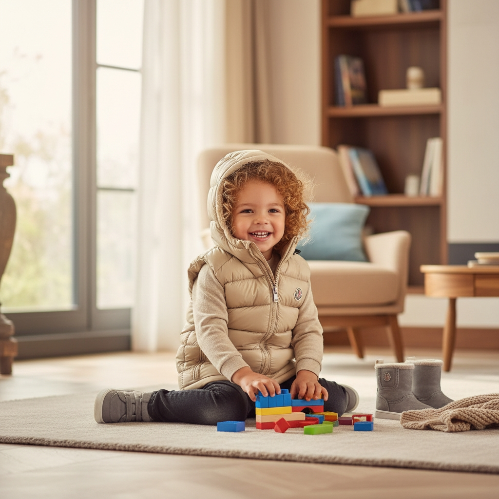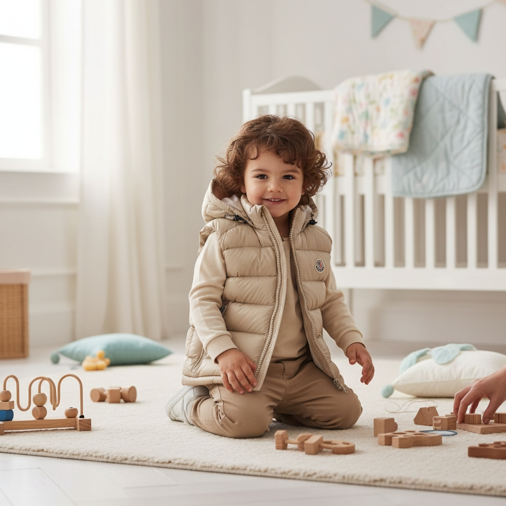 Design & Confort : Une coupe classique matelassée (puffer) qui assure une isolation optimale tout en laissant une totale liberté de mouvement pour jouer. Sa couleur beige sable est élégante et facile à assortir.