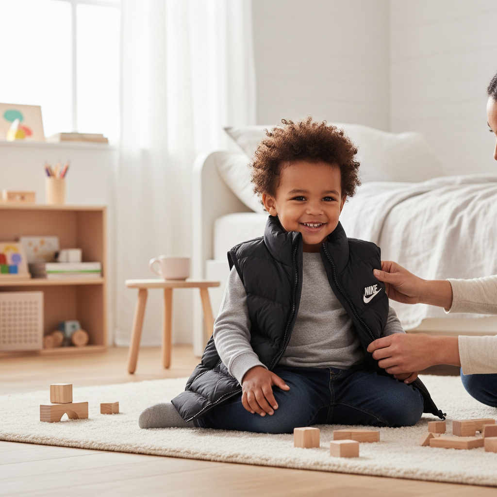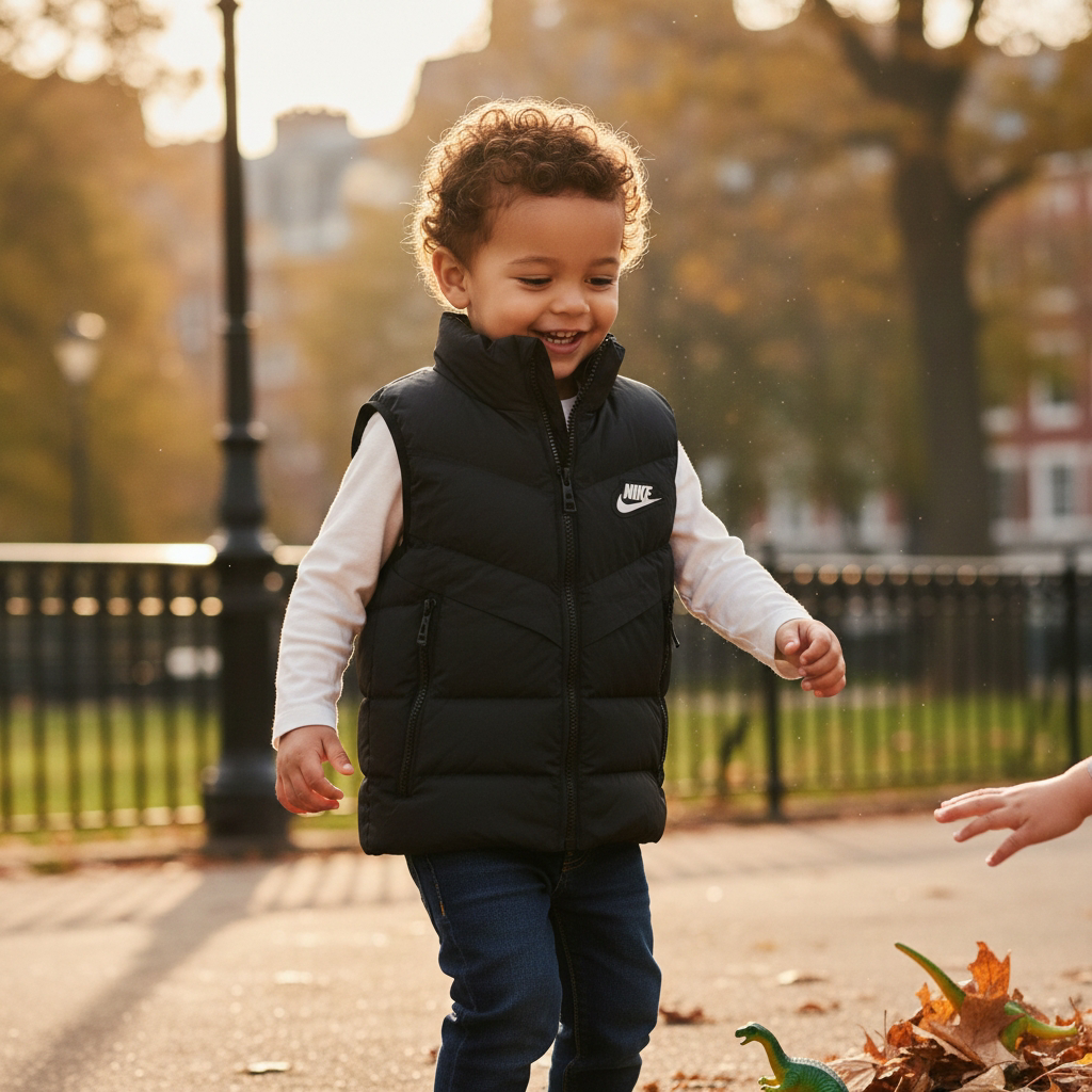 Ce gilet sans manches Nike est la pièce idéale pour les journées fraîches d’automne ou de printemps. Sa coupe classique et son matelassage en chevrons assurent une isolation thermique efficace sans encombrer les bras, permettant à l’enfant de bouger en toute liberté.