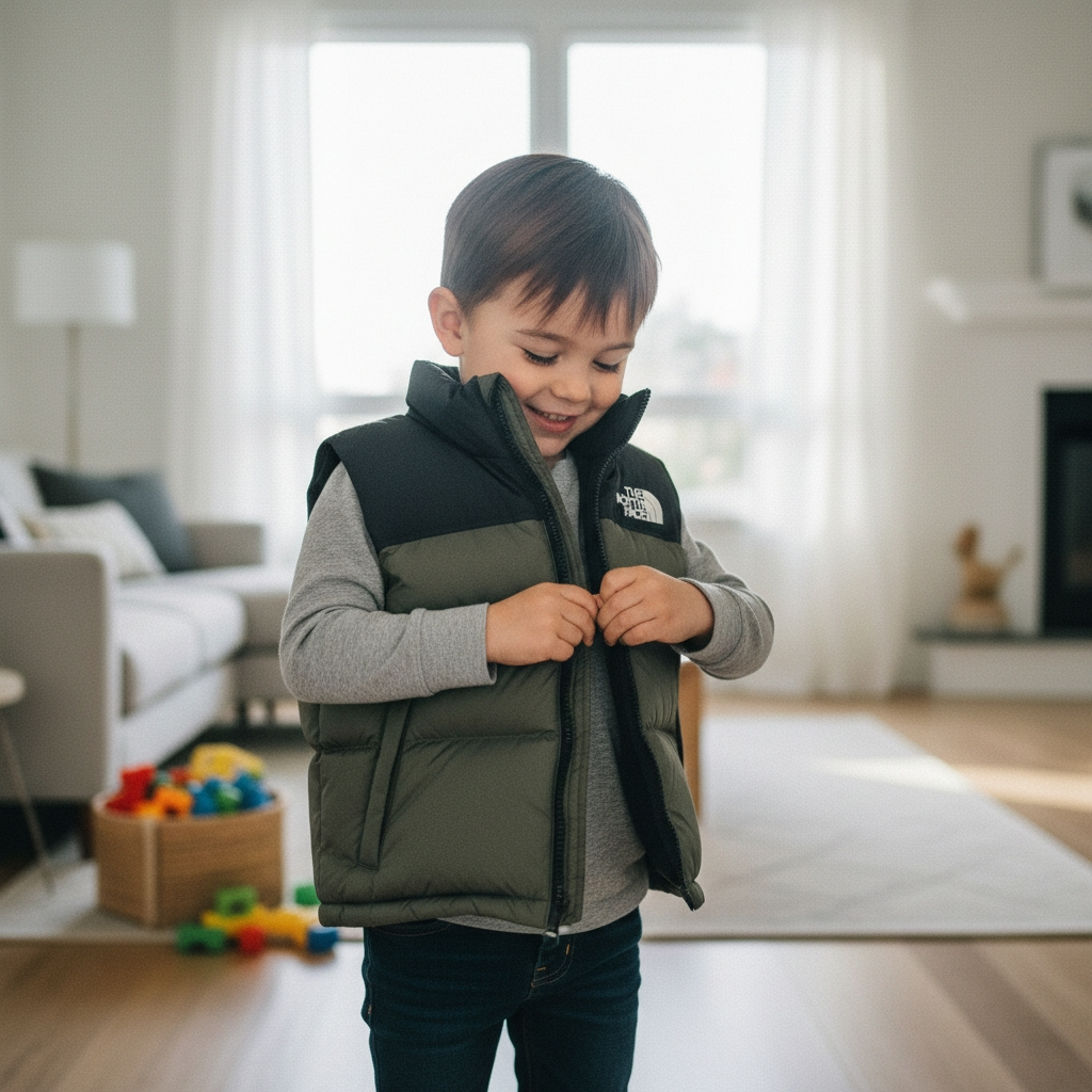 Protection Thermique : Doté d’un matelassage épais et léger, ce gilet offre une excellente rétention de la chaleur sans encombrer les mouvements de l’enfant.