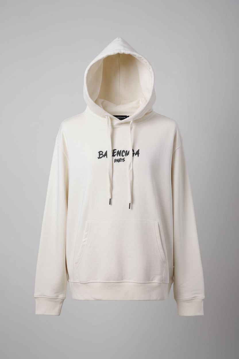 Incarnez l’esthétique du luxe contemporain avec ce sweat à capuche Balenciaga. Cette pièce phare se distingue par son coloris beige doux ou blanc cassé (écru) et son imprimé audacieux.