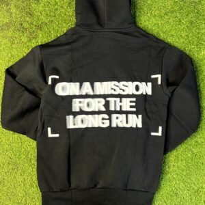 Ce hoodie noir est l’allié parfait pour ceux qui vivent avec un objectif clair : « ON A MISSION FOR THE LONG RUN » (En mission pour le long terme). Conçu pour le confort et la durabilité, il est idéal pour vos journées actives, vos entraînements ou simplement pour vous détendre avec style.