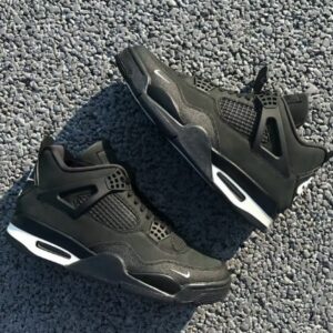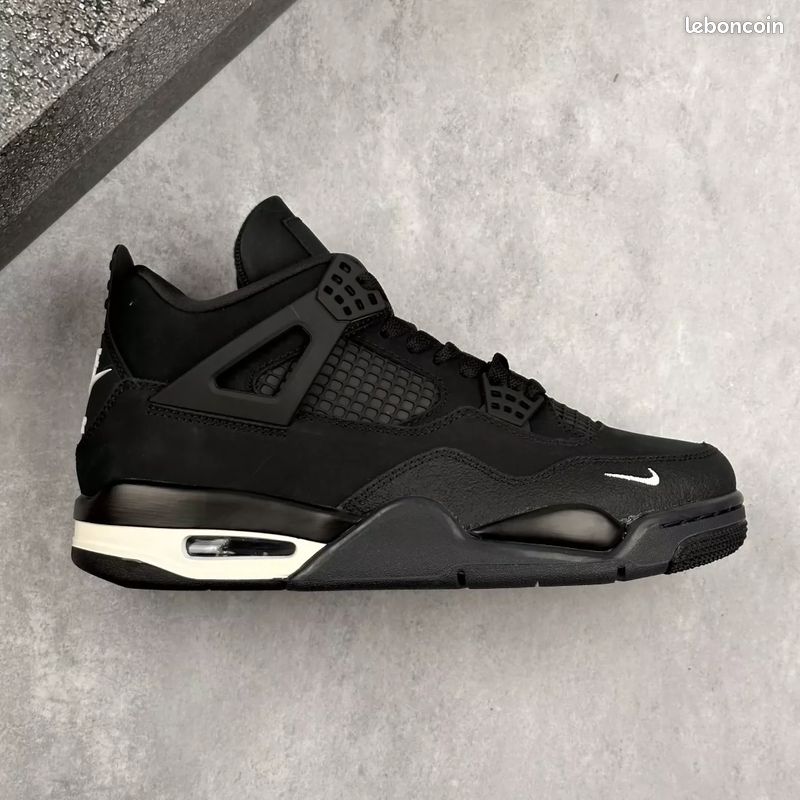 Découvrez la Air Jordan 4 Retro « Black Edition », une sneaker 100% noire au design puissant, avec des finitions premium et une touche Nike miniature blanche sur l’avant. Un modèle à la fois classique et moderne, parfait pour un look urbain et stylé.