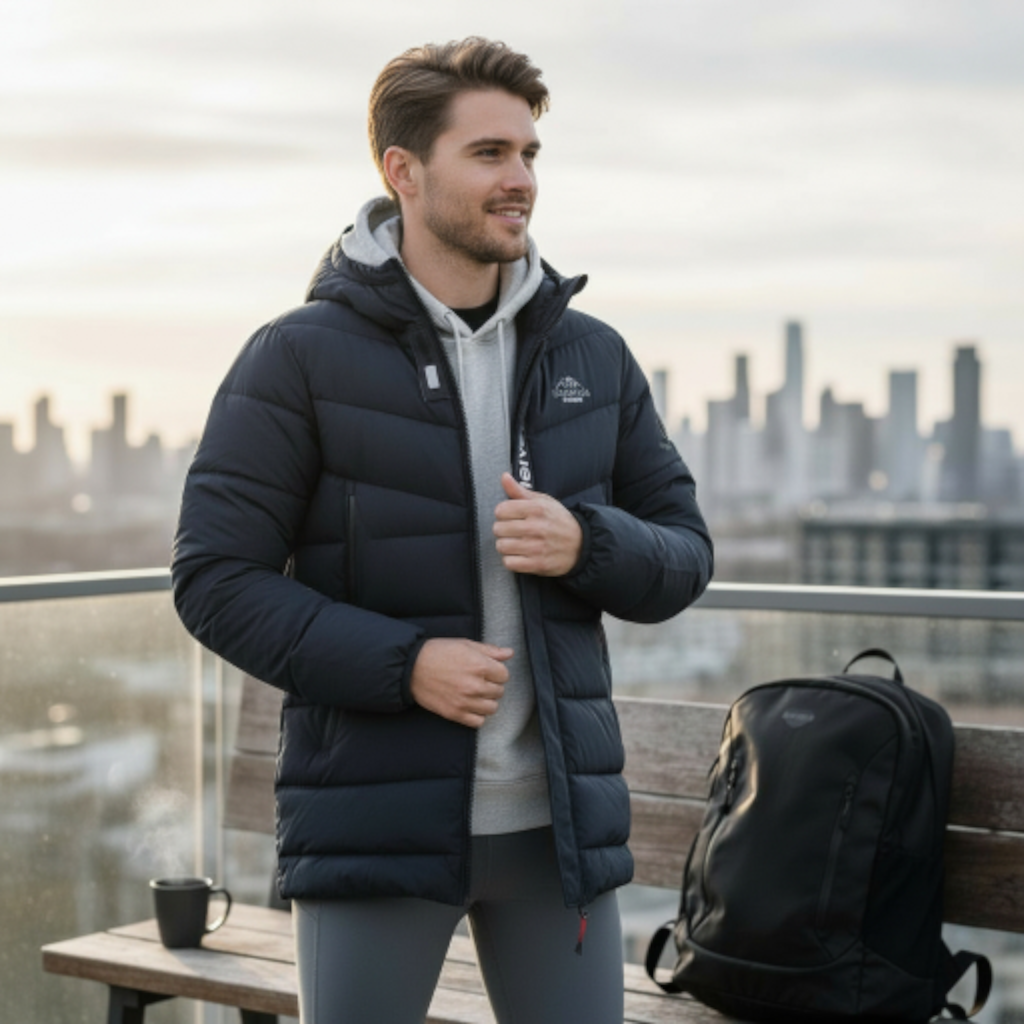 Design Fonctionnel : Dotée d’une capuche intégrée pour une protection complète contre le vent et la pluie fine.
