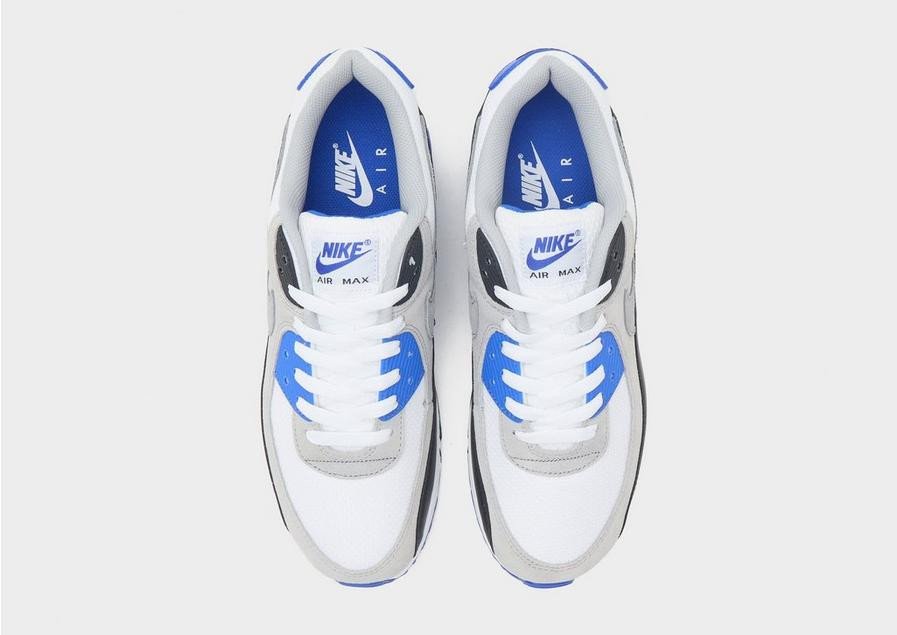 Détails Signature : Les inserts en TPU (plastique nervuré) de couleur bleu royal se retrouvent sur les œillets, le talon et autour de l’unité Air-Sole.