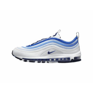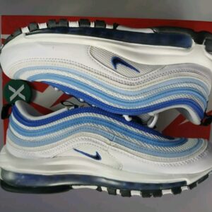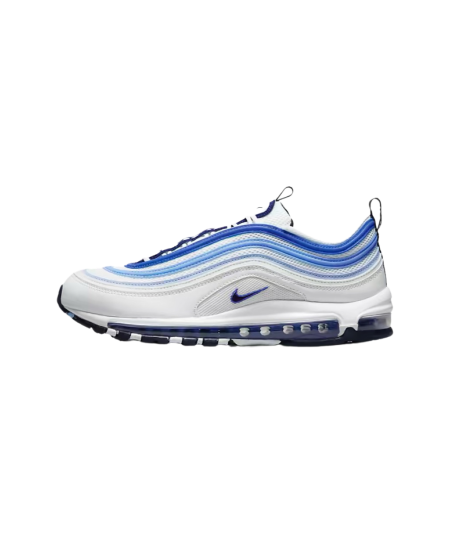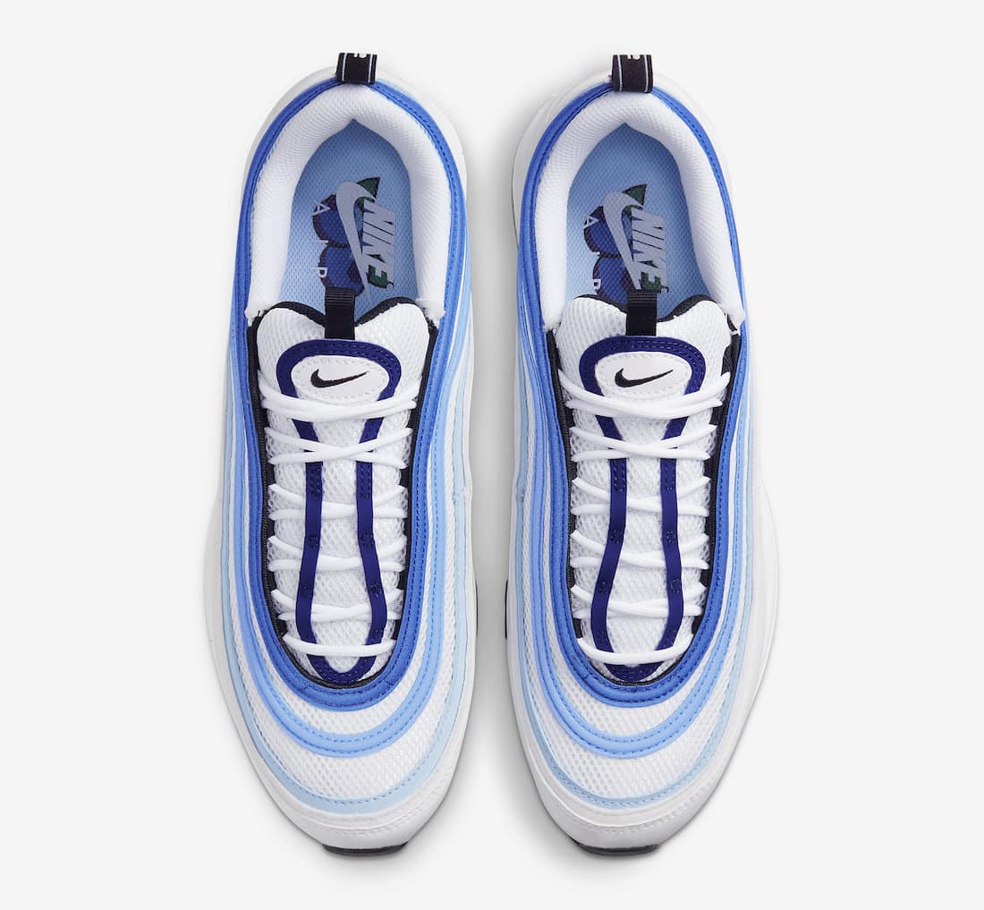 La Nike Air Max 97 « Blueberry » revisite le design culte de la AM97 avec une palette de couleurs douce et fruitée. Inspirée des tons naturels du bleuet (blueberry), cette version combine différents dégradés de bleu pastel, violet lavande et blanc cassé, pour un look à la fois rafraîchissant et original.
