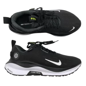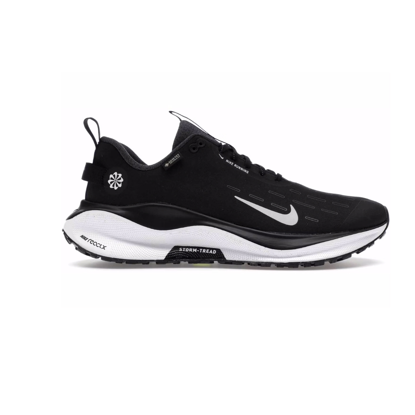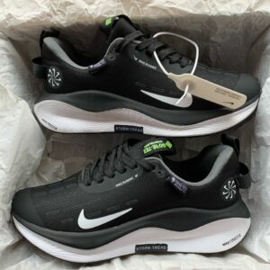 Sa mousse React assure un amorti doux et réactif, tandis que la semelle extérieure Storm-Tread offre une excellente adhérence sur les surfaces mouillées, boueuses ou rocailleuses. Le design en noir sobre avec des touches de blanc et de vert fluo (sous la semelle) apporte une touche moderne à cette bête de course.