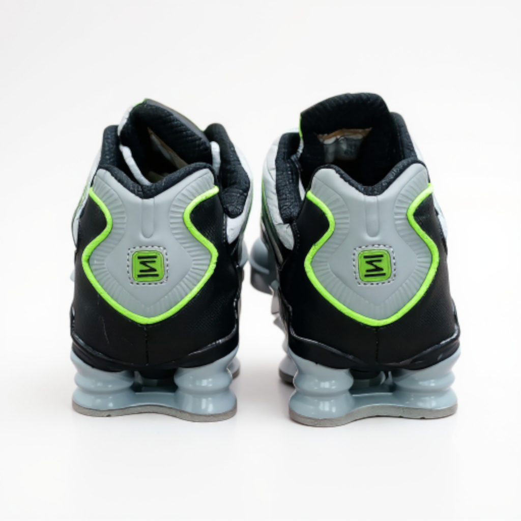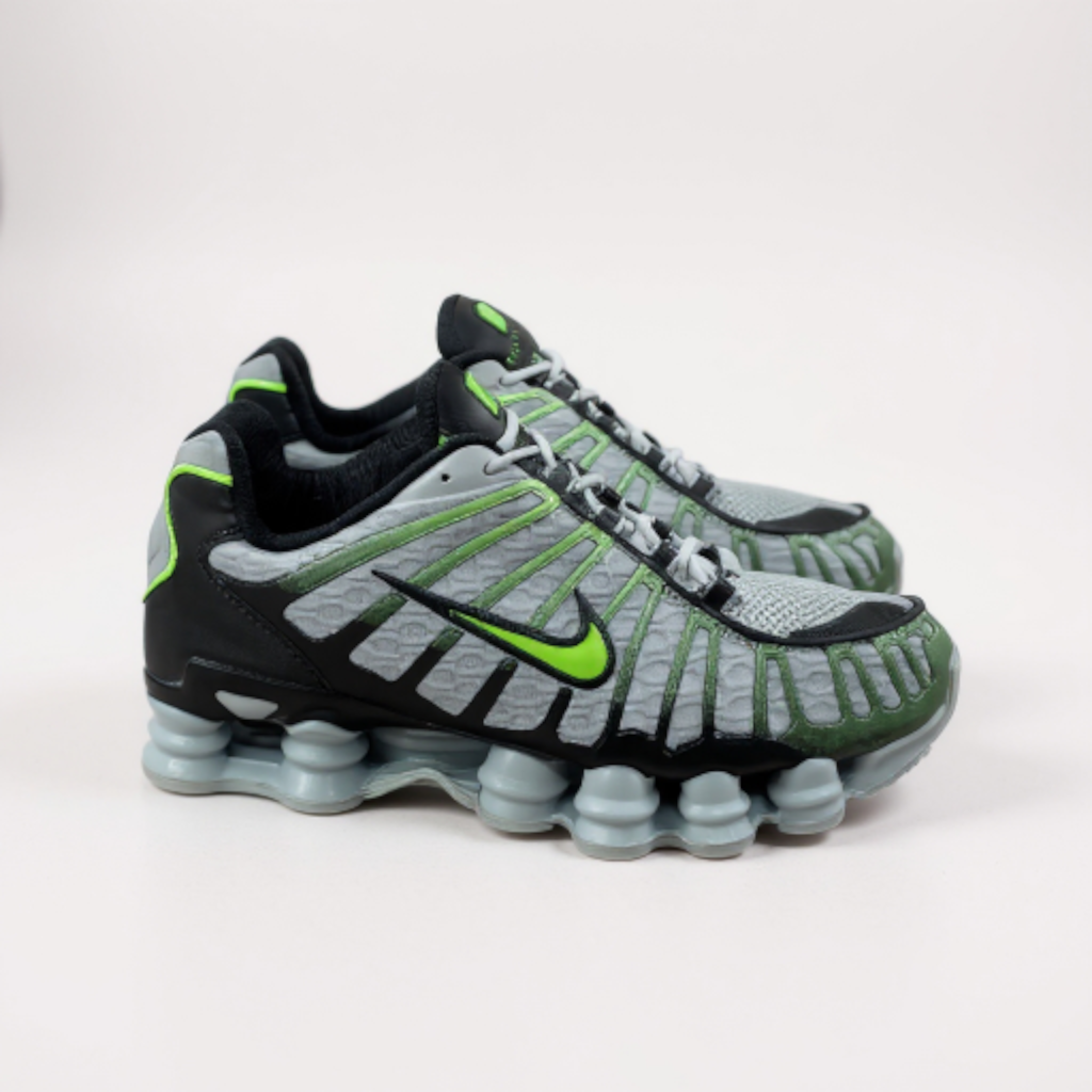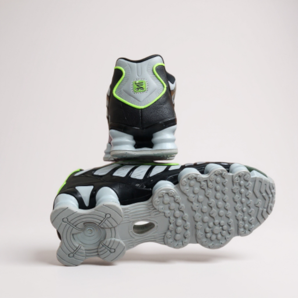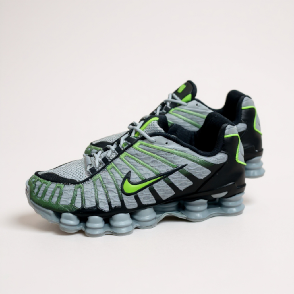 Ce modèle Nike Shox TL allie l’agressivité du streetwear à une esthétique sombre et sophistiquée. L’intégralité de la chaussure est dominée par le Noir Carbone, créant une silhouette puissante. L’amorti Shox sur toute la longueur, entièrement noir et brillant, offre un rebond exceptionnel pour un confort durable. Les accents de Bleu Cobalt (Bleu Électrique) sont placés stratégiquement pour attirer l’œil : sous la semelle, au niveau du talon, et sur le contour du Swoosh latéral. Ce contraste apporte une énergie discrète mais affirmée, idéale pour ceux qui aiment les designs percutants qui restent faciles à assortir.