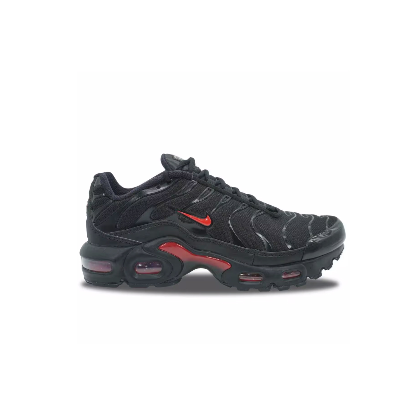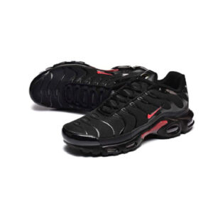 La Nike Air Max Plus TN revient dans une version audacieuse et élégante, avec une base noire rehaussée d’un swoosh dégradé bleu et rouge qui attire l’œil. Les fameuses lignes thermocollées apportent du relief à la tige, tandis que la semelle noire avec accents rouges conserve l’ADN agressif de ce modèle culte.