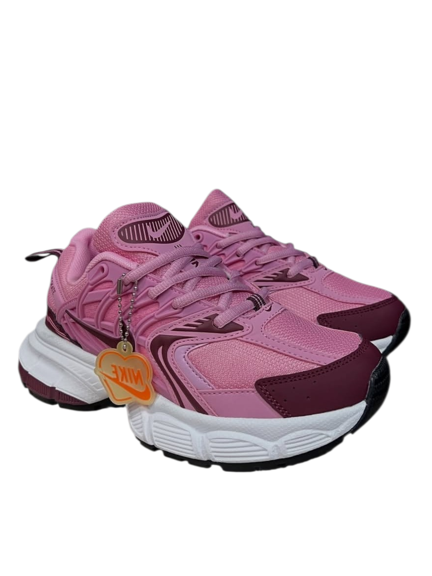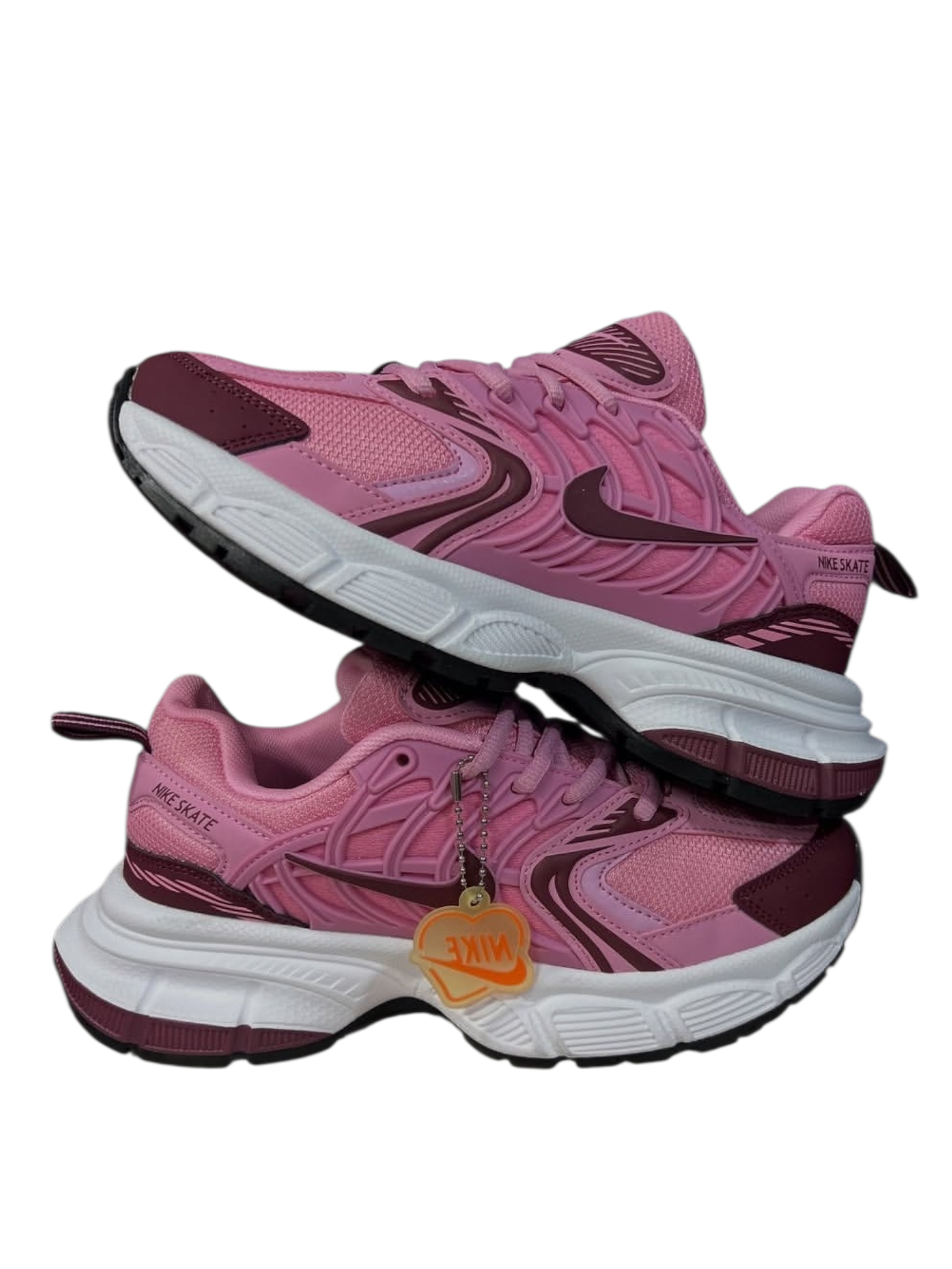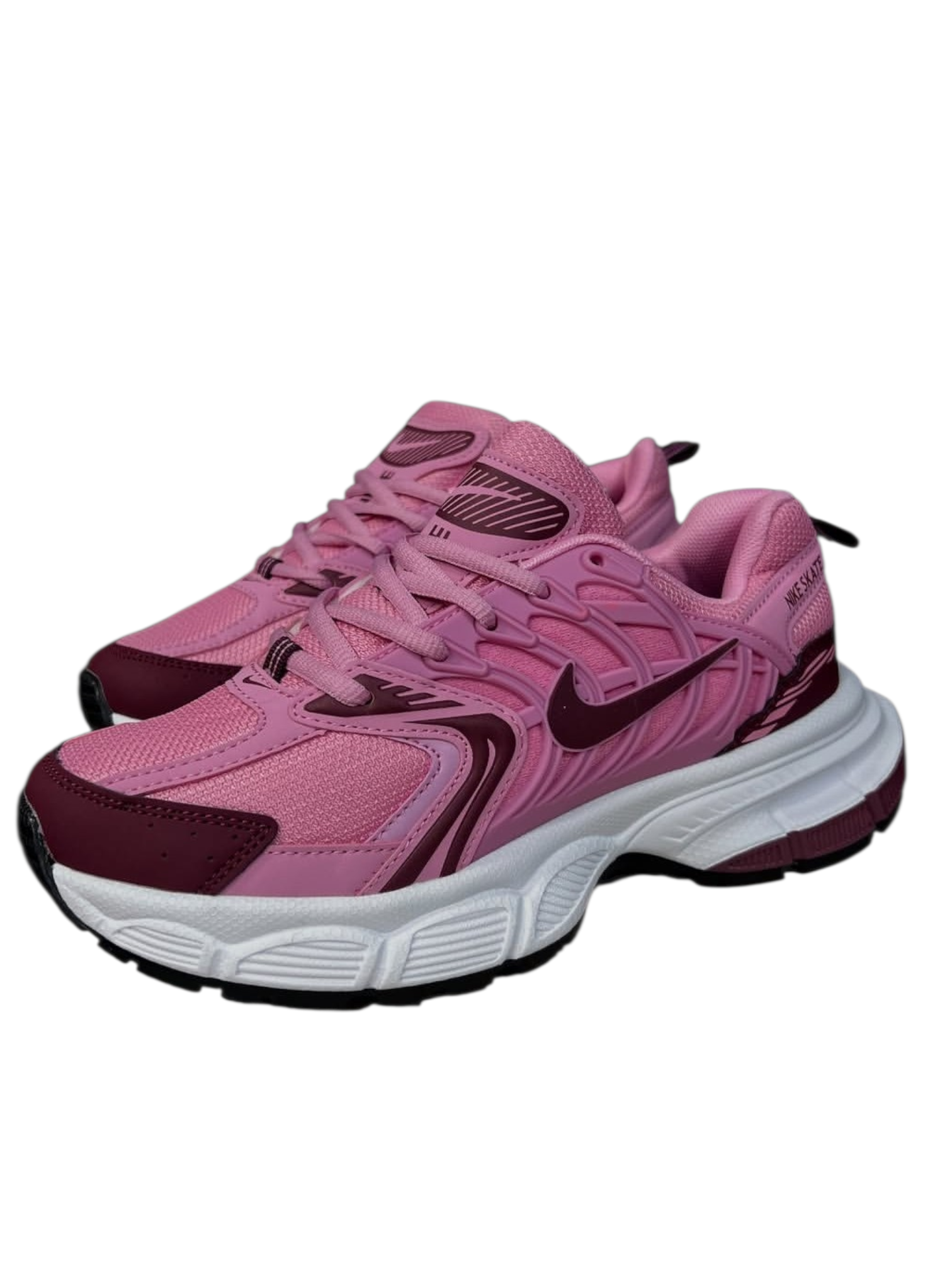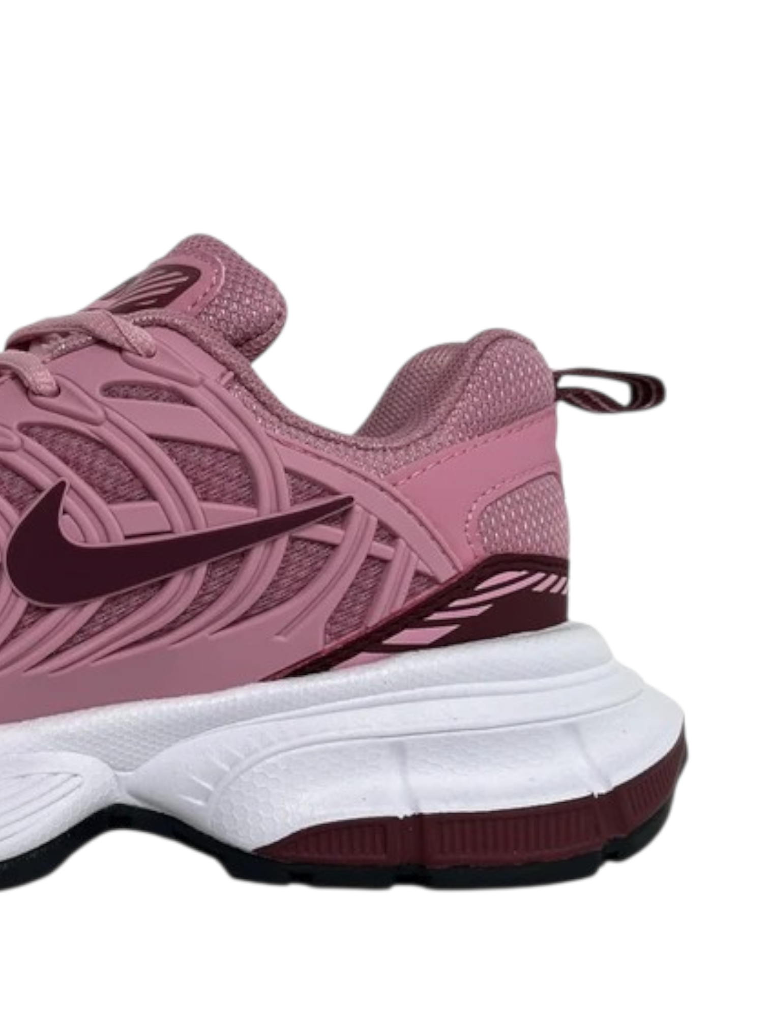 Sneakers Nike V2K Run rose et bordeaux, style rétro-running avec semelle épaisse confortable et tige respirante. Parfaites pour un look tendance et confortable au quotidien.