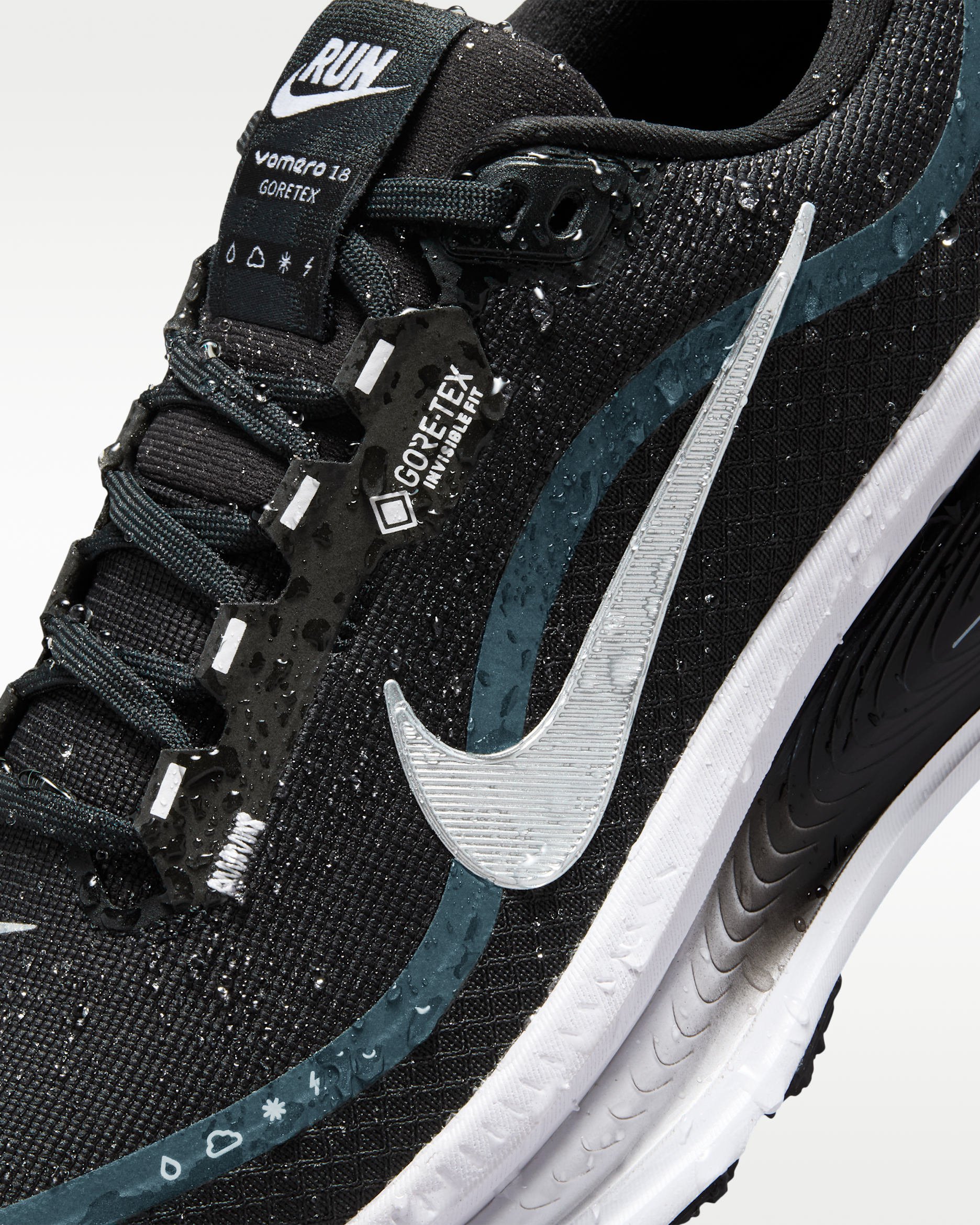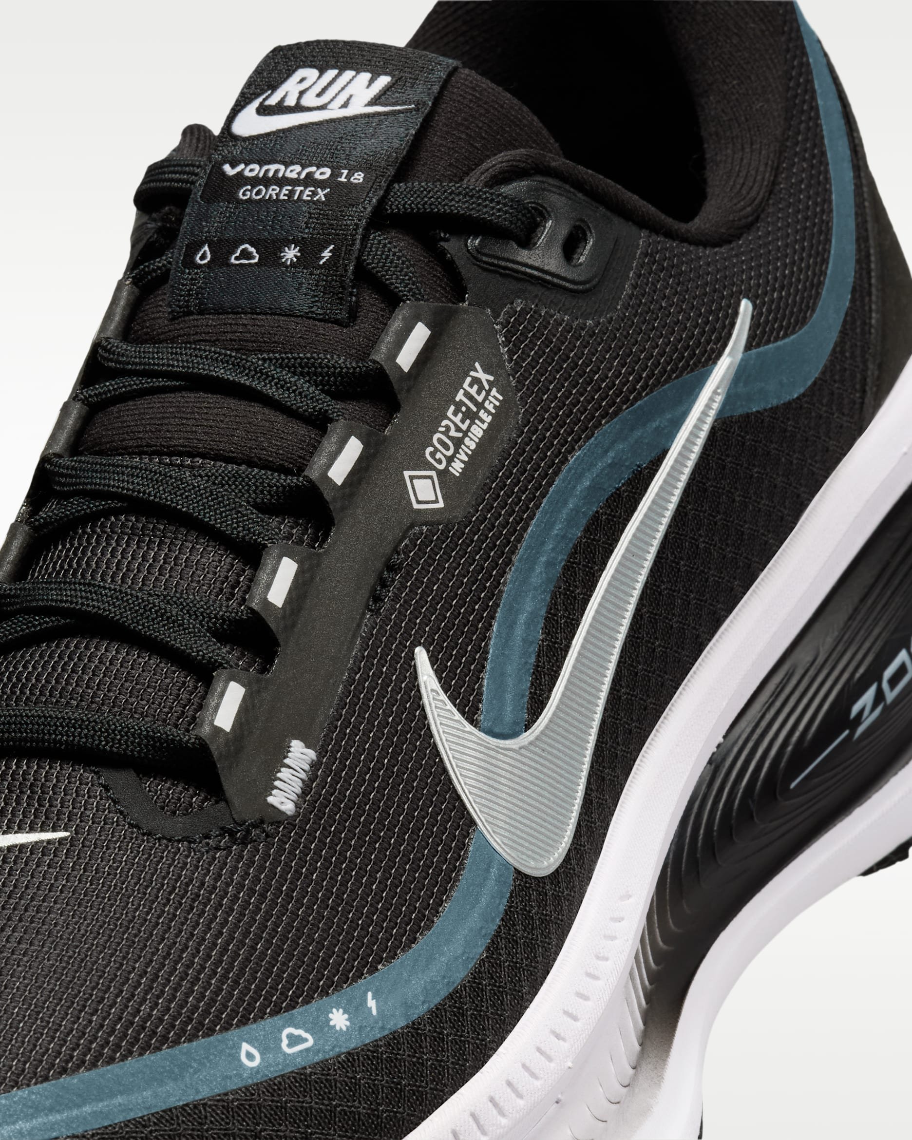 Vomero 18 GORE-TEX est une chaussure de running haut de gamme conçue pour offrir un maximum d’amorti tout en protégeant vos pieds des intempéries. C’est le choix idéal pour les coureurs qui ne s’arrêtent pas quand la pluie commence à tomber.