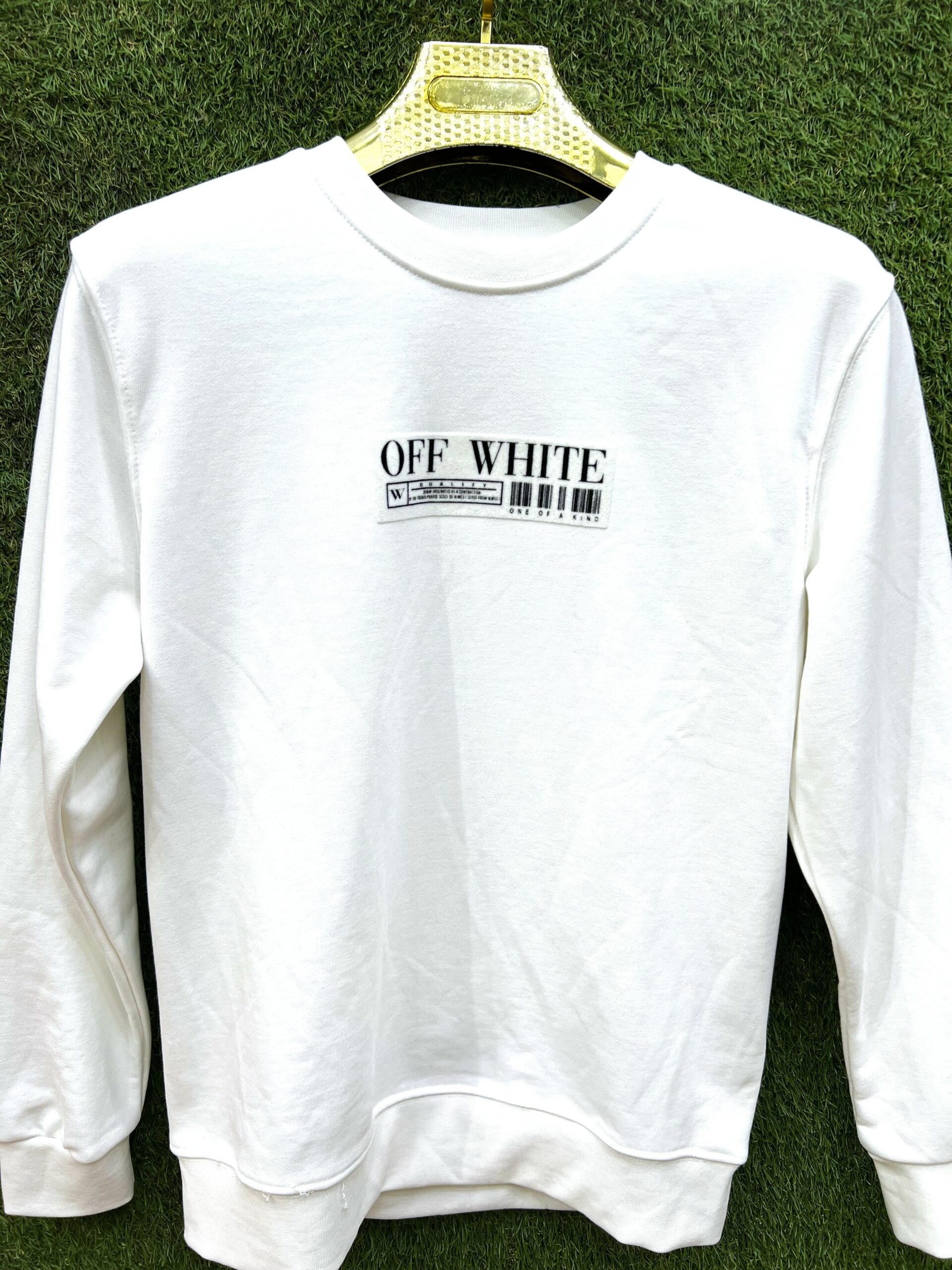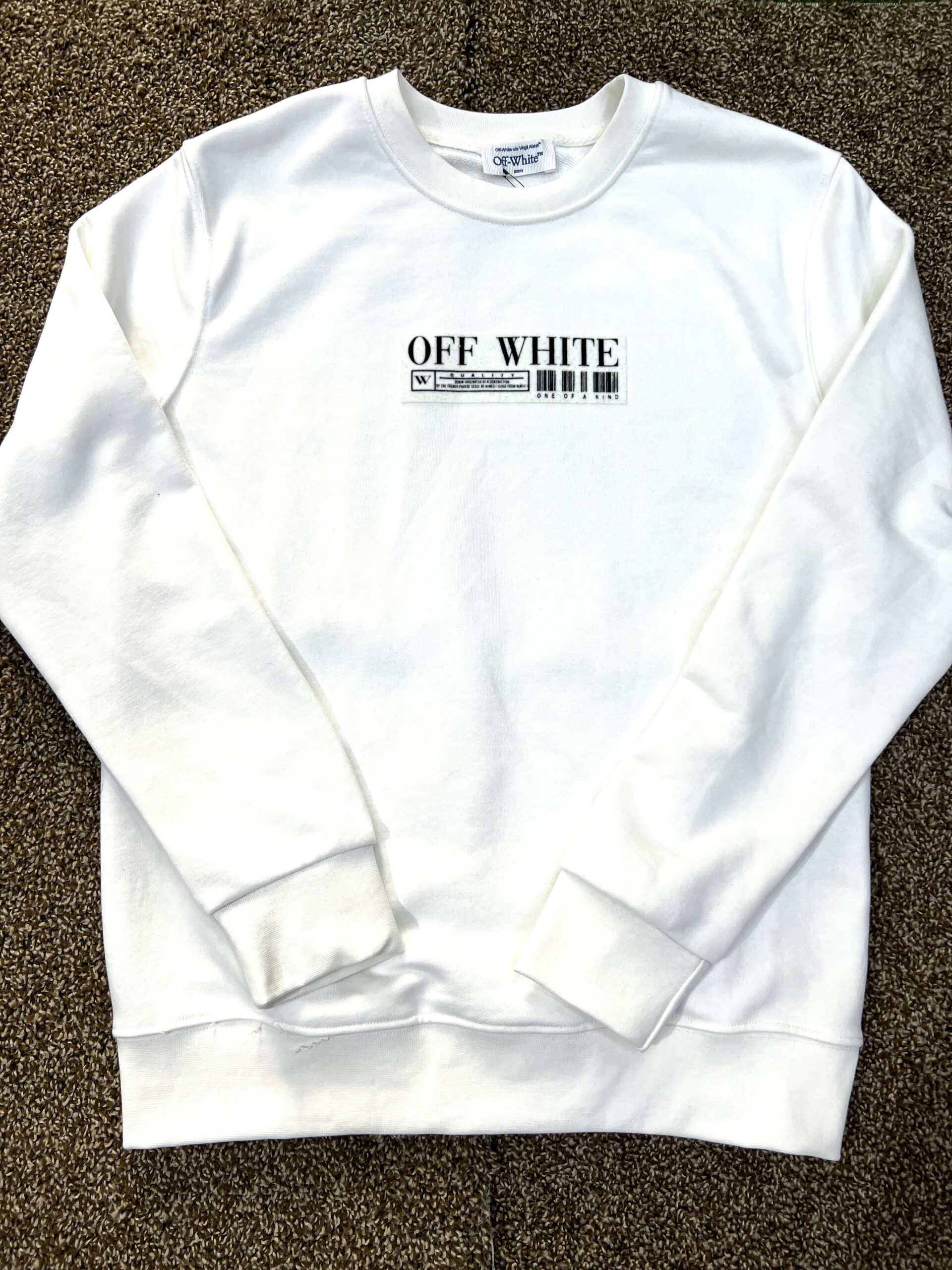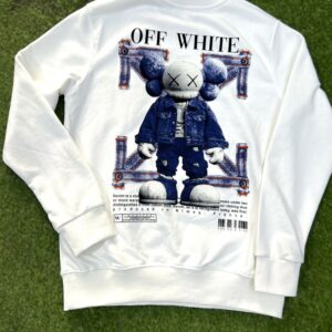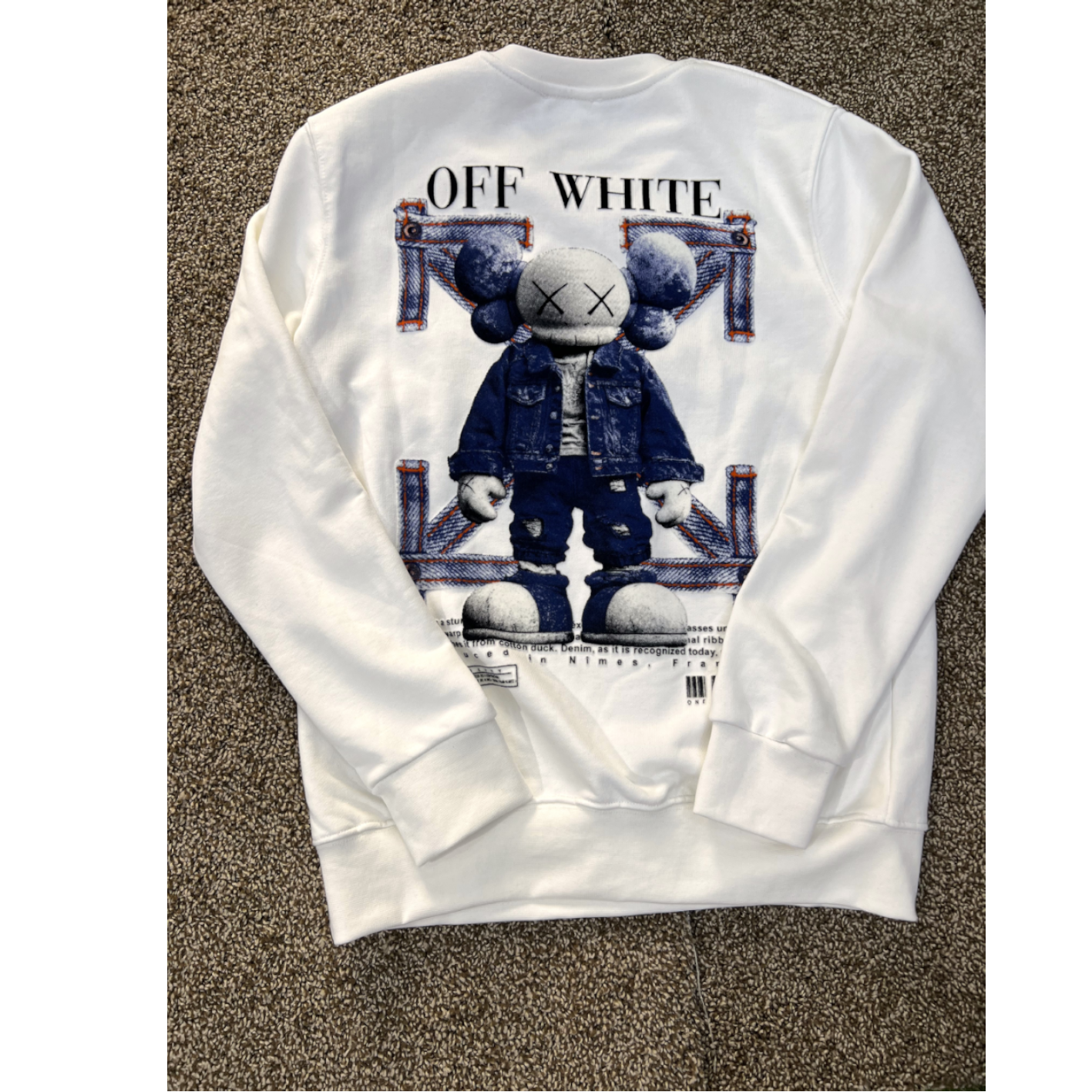 Sweat OFF WHITE blanc – Design exclusif avec logo devant et illustration artistique au dos. Confort et style urbain réunis.