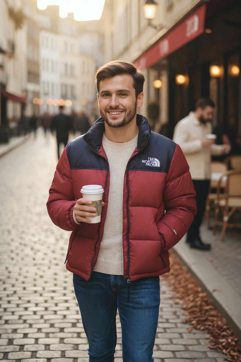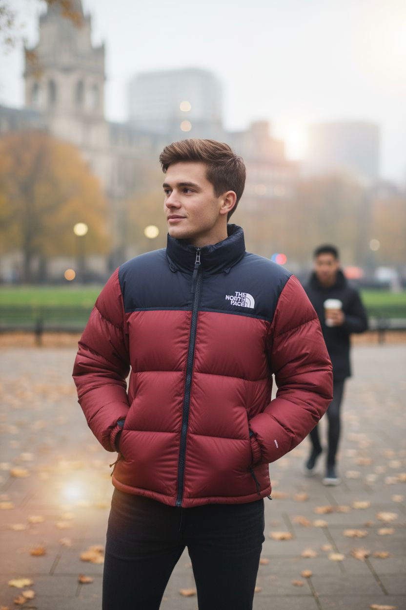 Affrontez le froid avec style grâce à ce blouson The North Face. Conçu pour offrir chaleur et confort, il présente un design emblématique bicolore rouge bordeaux et noir. Son rembourrage épais assure une excellente isolation thermique, tandis que sa coupe ajustée et son col montant protègent efficacement contre le vent et les basses températures.