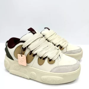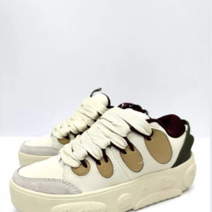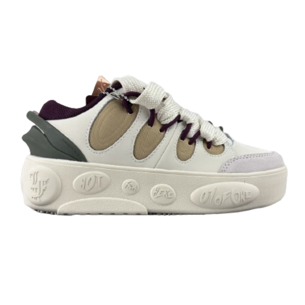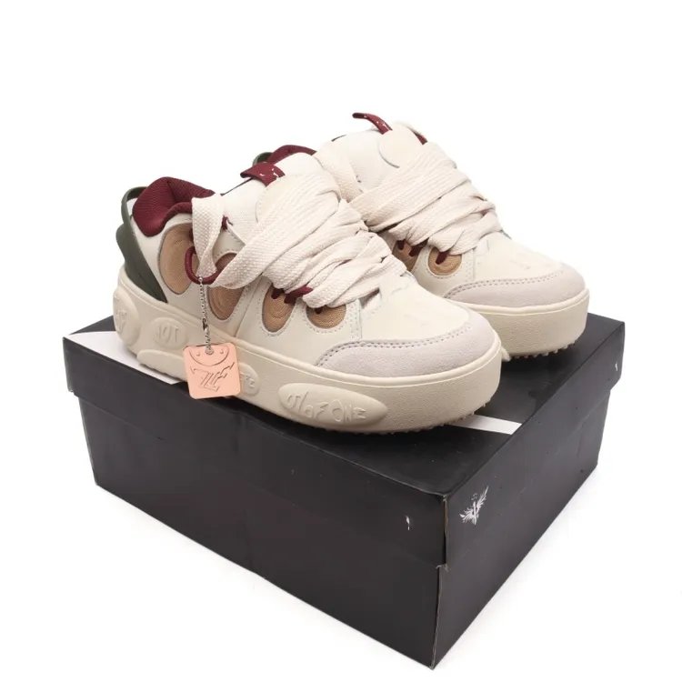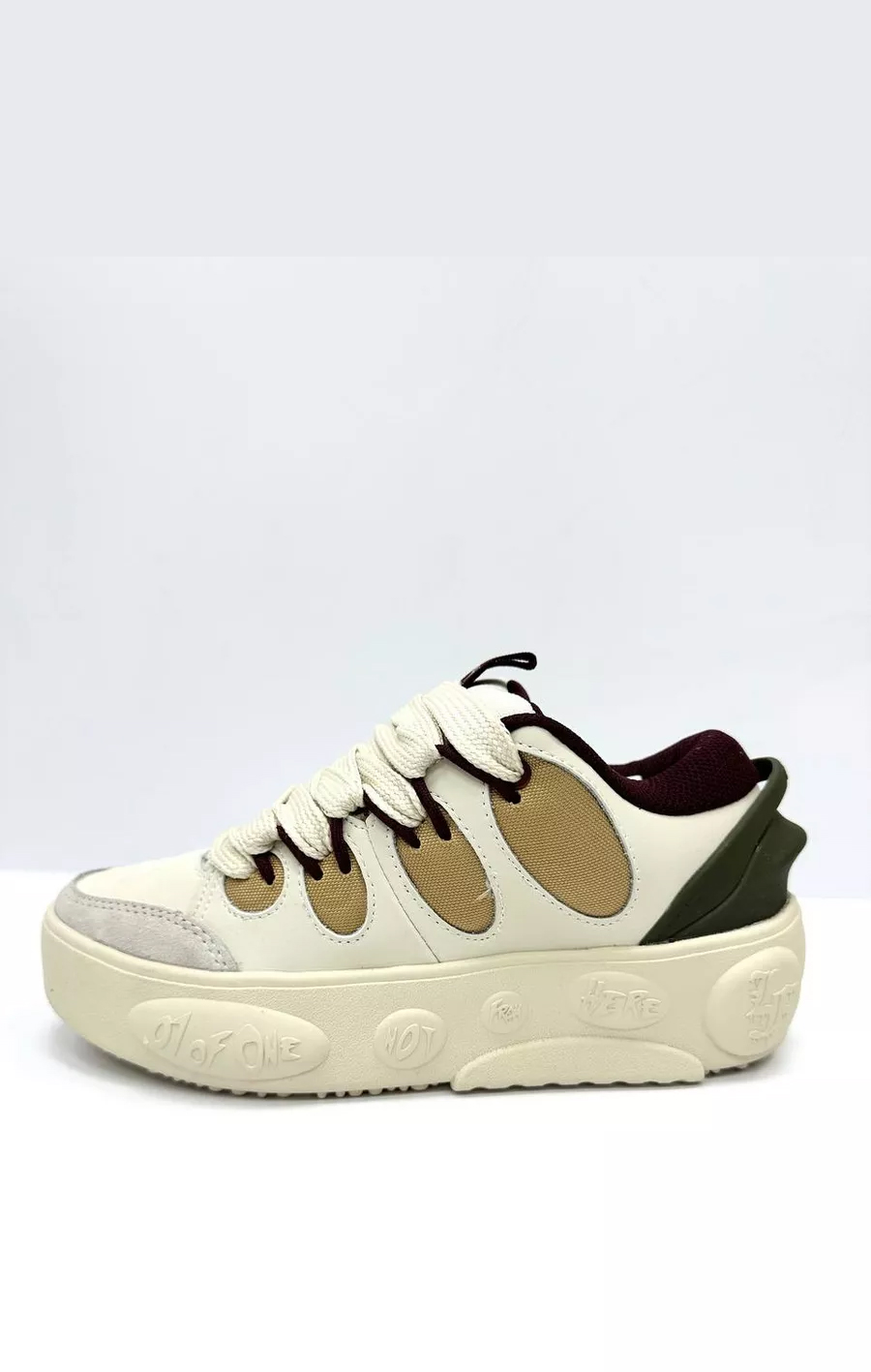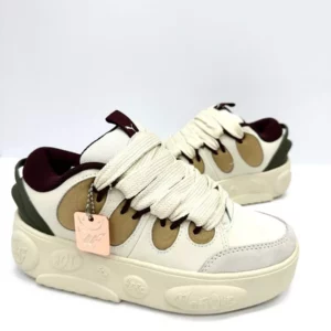 Affirmez votre style avec ces baskets au design audacieux et ultra tendance. Conçues pour allier confort et originalité, elles se distinguent par leur semelle épaisse sculptée de motifs ludiques, leur combinaison de matières (toile, cuir synthétique, suède) et leurs nuances sobres mais contrastées : beige, kaki, marron caramel et bordeaux. Le laçage large et texturé ajoute une touche streetwear affirmée, tandis que la languette décorée d’un pendentif métallique donne un petit plus original.