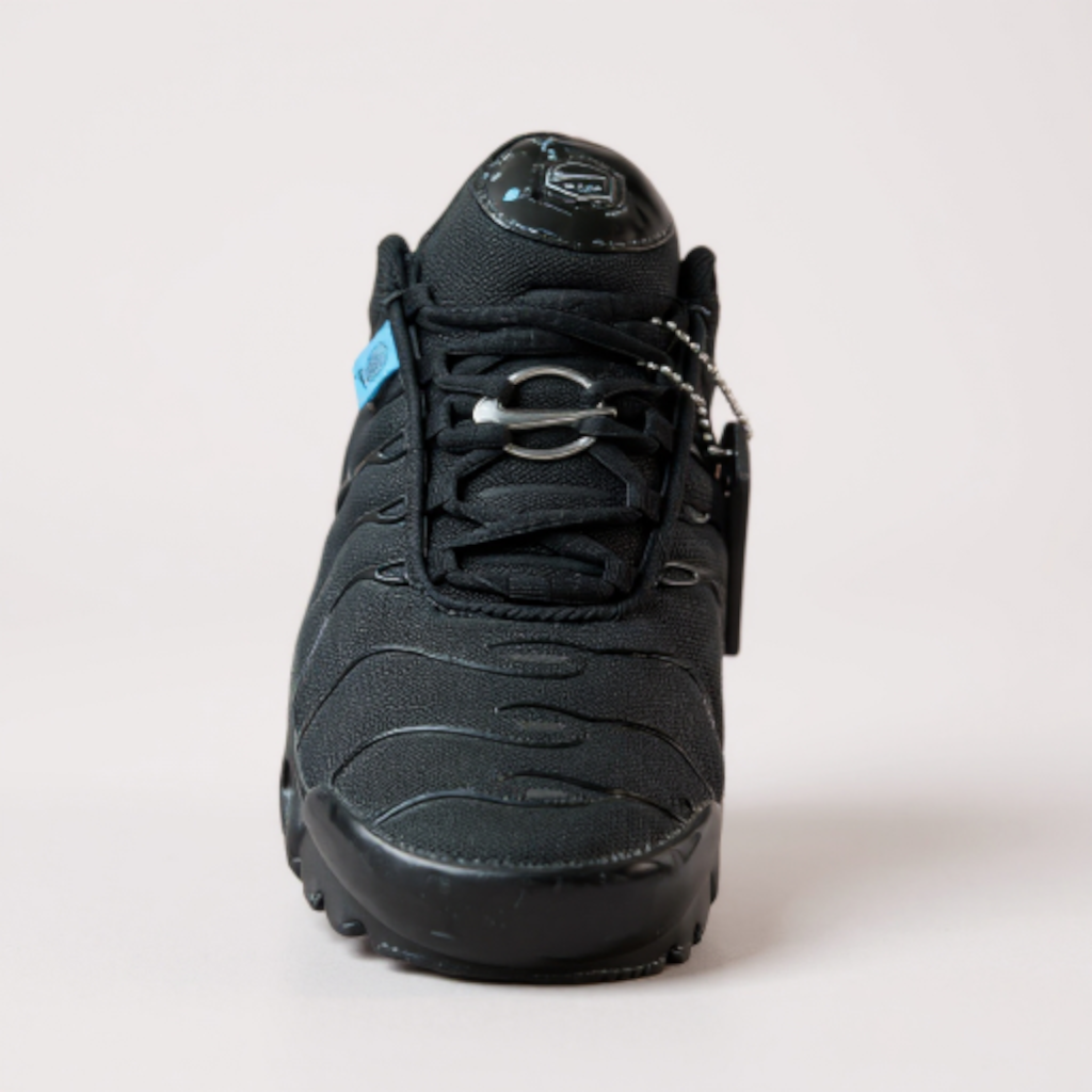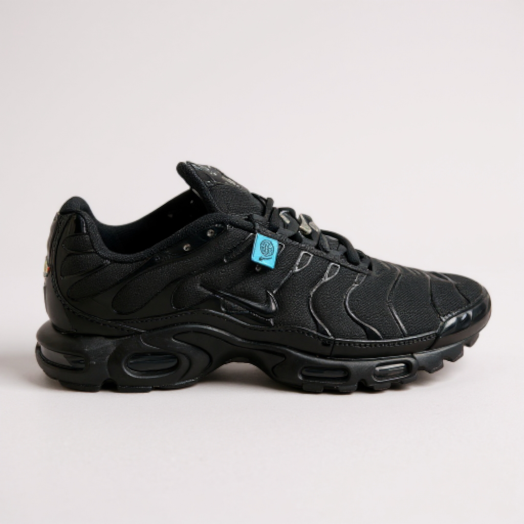 Incontournable de la culture streetwear, la Nike Air Max Plus, plus connue sous le nom de TN, est présentée ici dans un coloris Triple Black audacieux. Ce modèle est célèbre pour son design agressif et sa technologie d’amorti innovante.