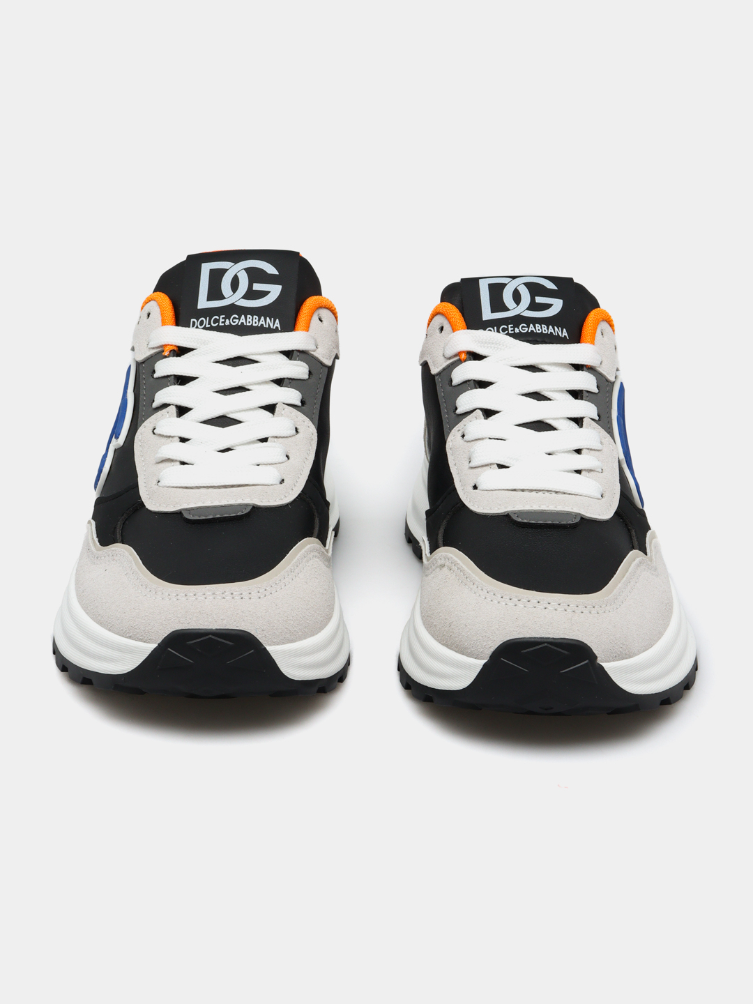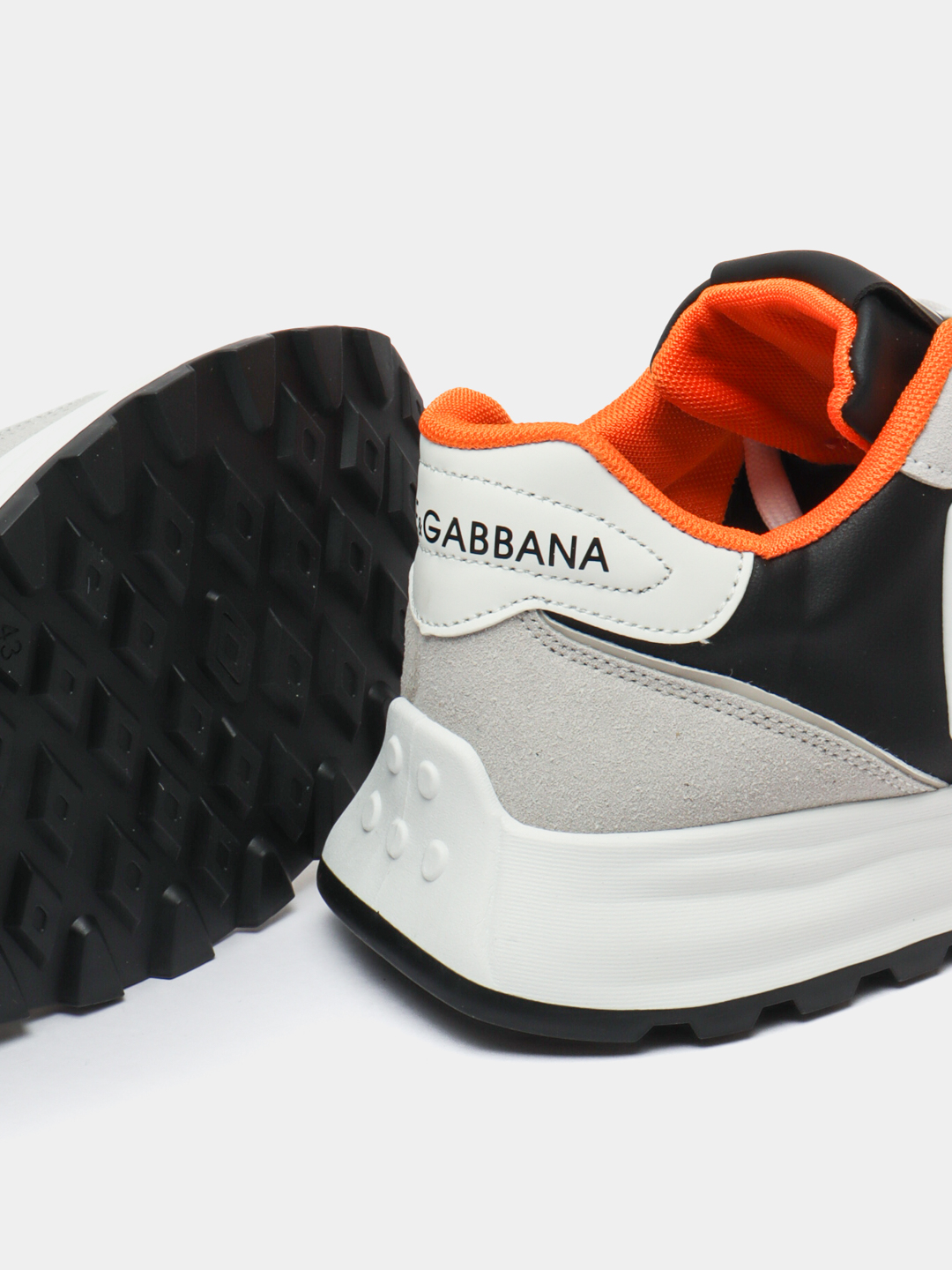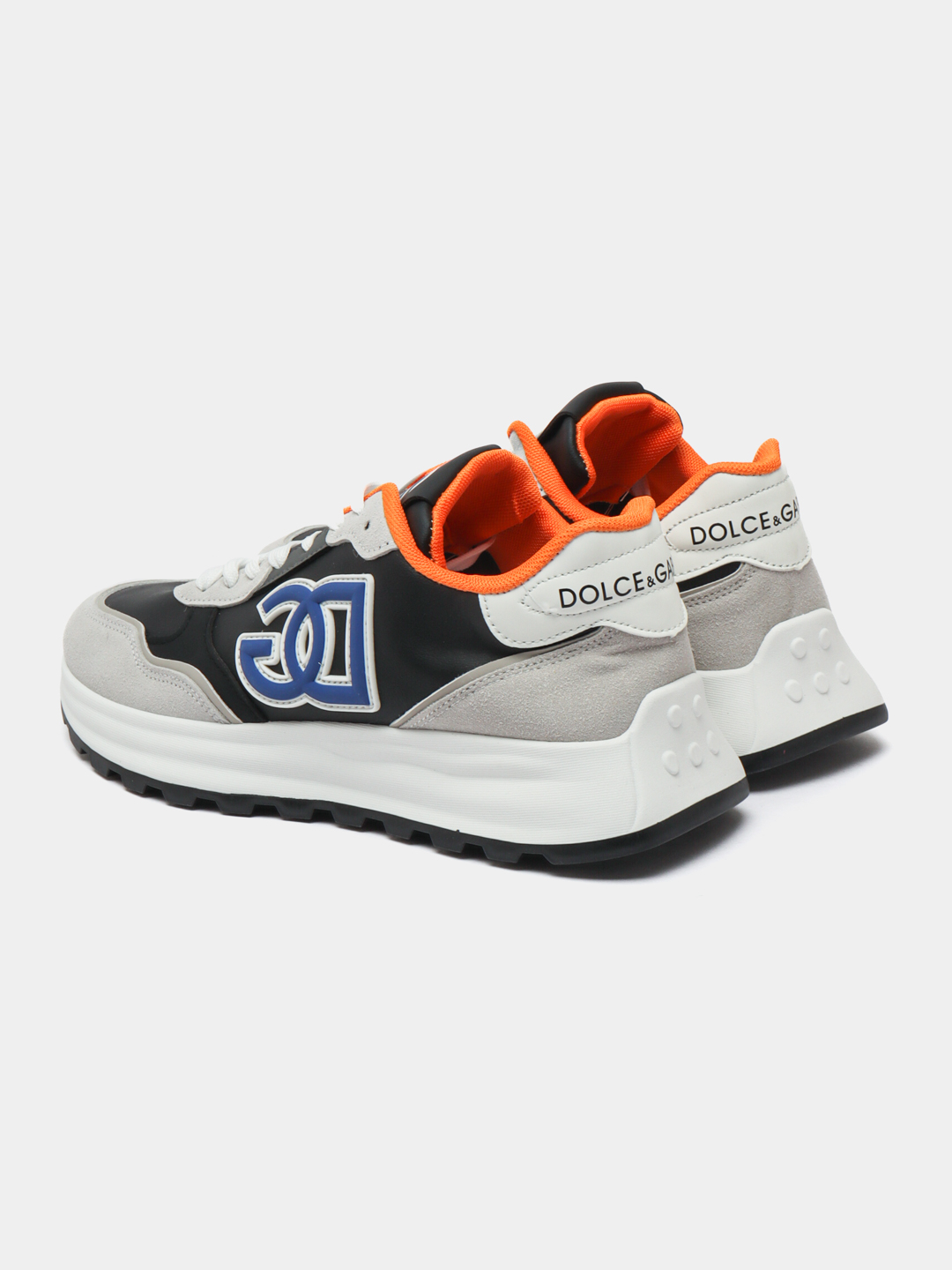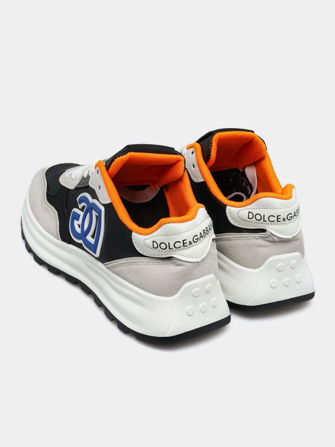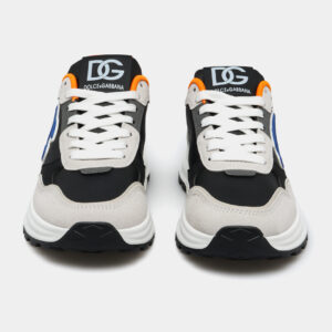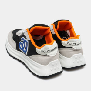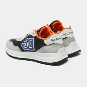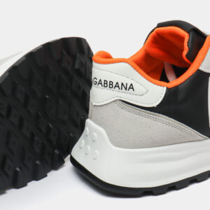 Affichez votre originalité avec ces sneakers signées Dolce & Gabbana, fusion parfaite entre performance et design italien audacieux. Cette version moderne séduit par ses contrastes de couleurs : noir intense, gris clair en suède, et doublure orange vif pour une touche dynamique.