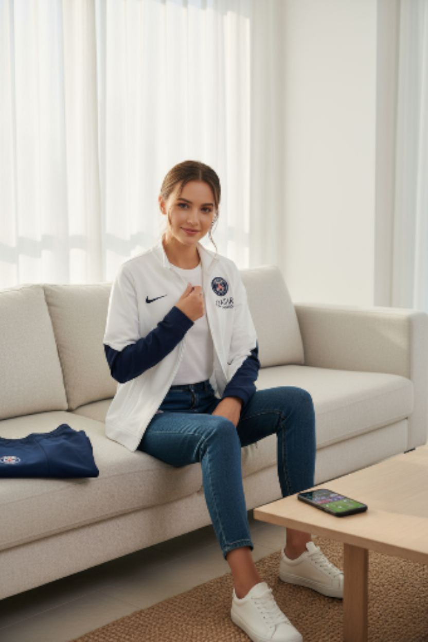 Affiche ton soutien au Paris Saint-Germain avec ce survêtement Nike officiel PSG, alliant confort, performance et élégance. L’ensemble comprend une veste zippée blanche ornée du logo du PSG et du swoosh Nike, associée à un pantalon bleu marine fuselé pour un style sportif et moderne.