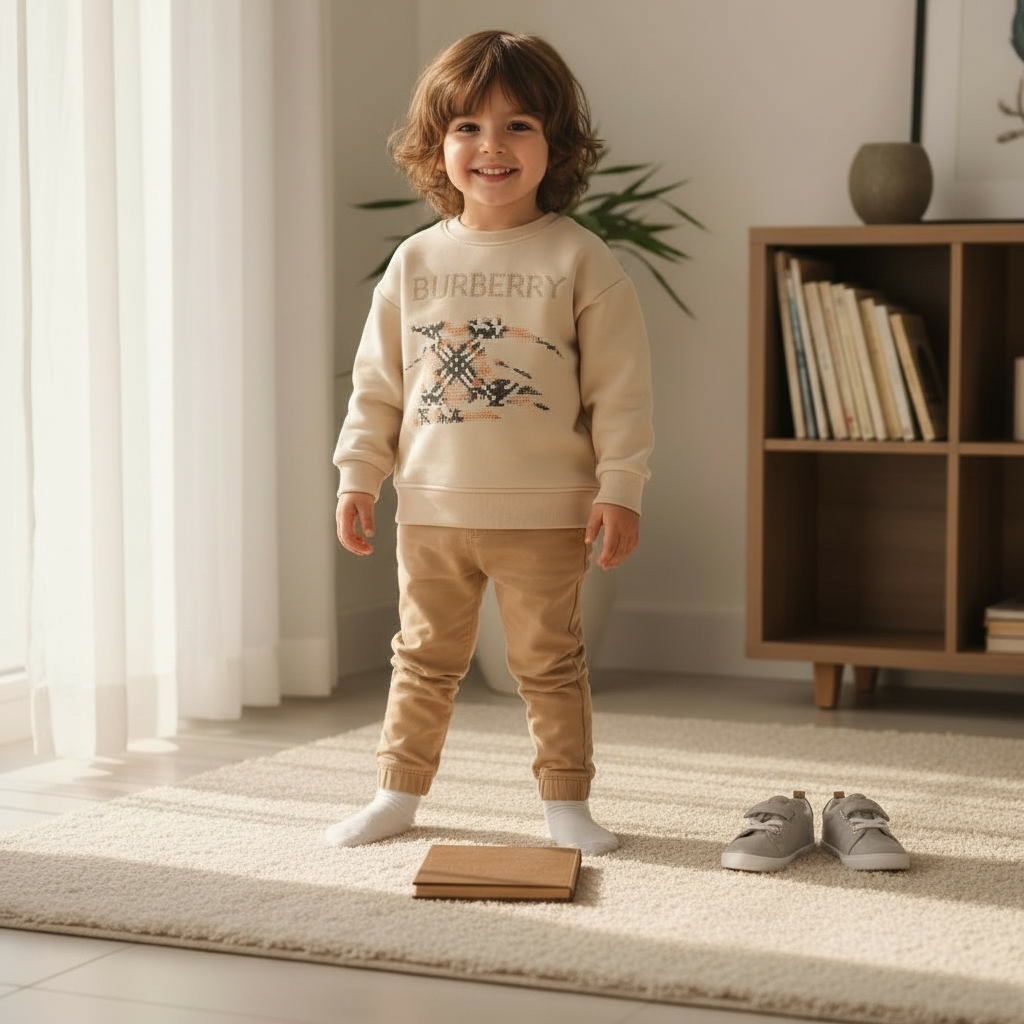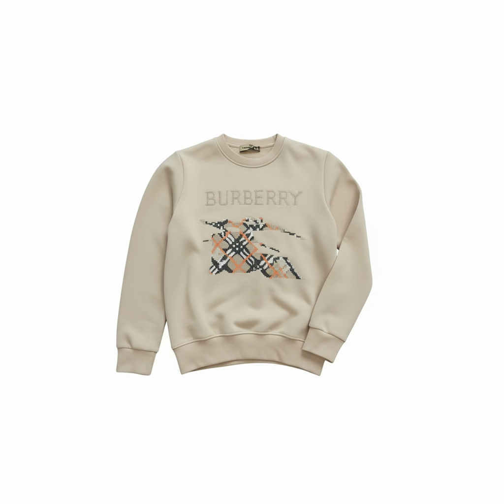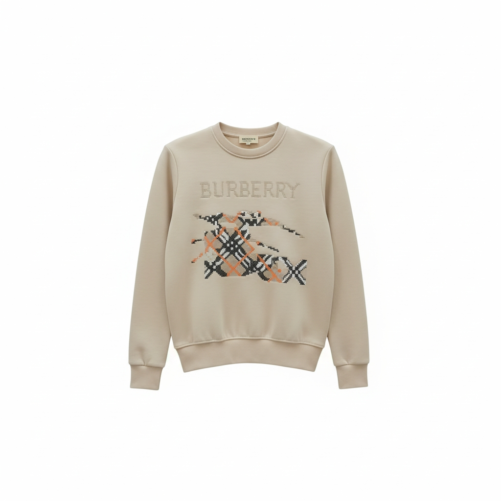 Affirmez votre style avec ce sweat-shirt Burberry haut de gamme, alliant confort moderne et héritage britannique. Conçu dans un coloris beige sable polyvalent, il arbore le célèbre logo « Equestrian Knight » (le chevalier proscrit) revisité dans un style graphique pixelisé intégrant le tartan iconique de la marque.