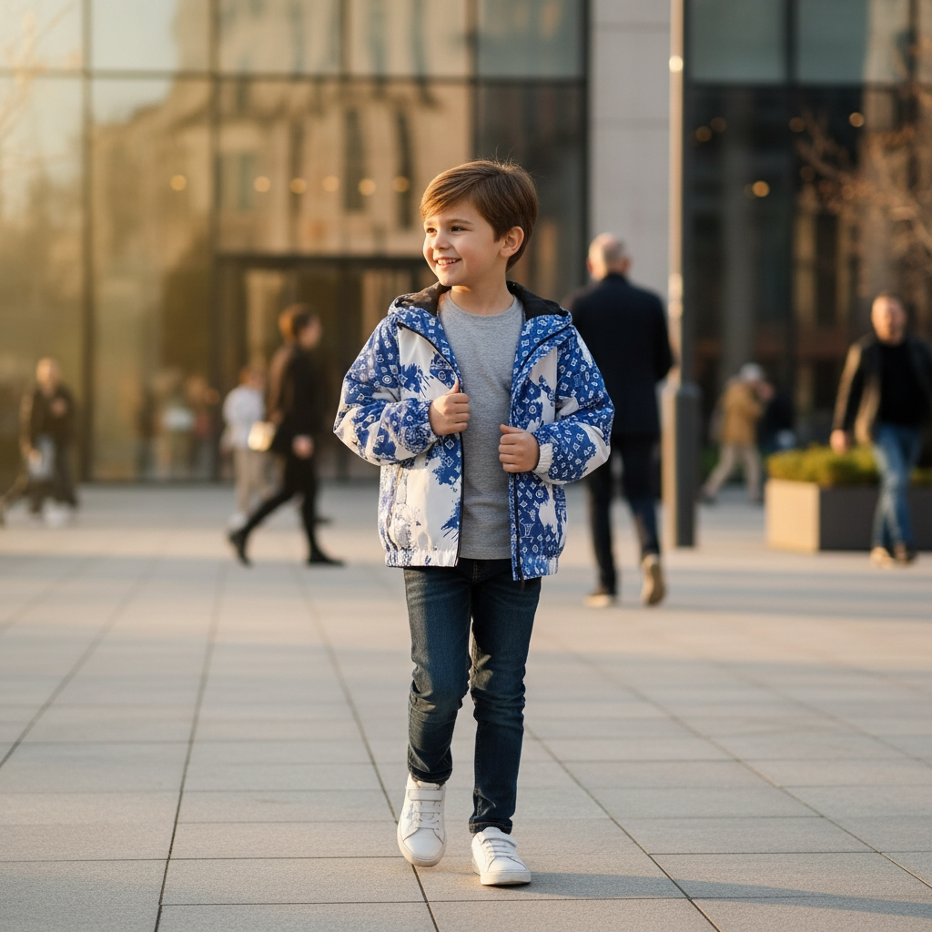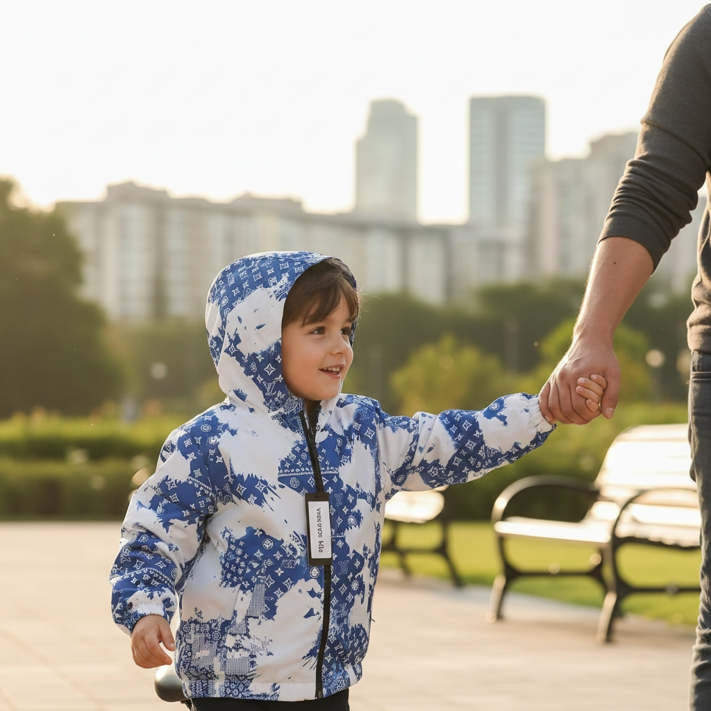 Donnez une touche de haute couture urbaine à la garde-robe de votre enfant avec cette veste à capuche unique. Alliant confort moderne et esthétique « logomania », elle est parfaite pour ceux qui veulent se démarquer.